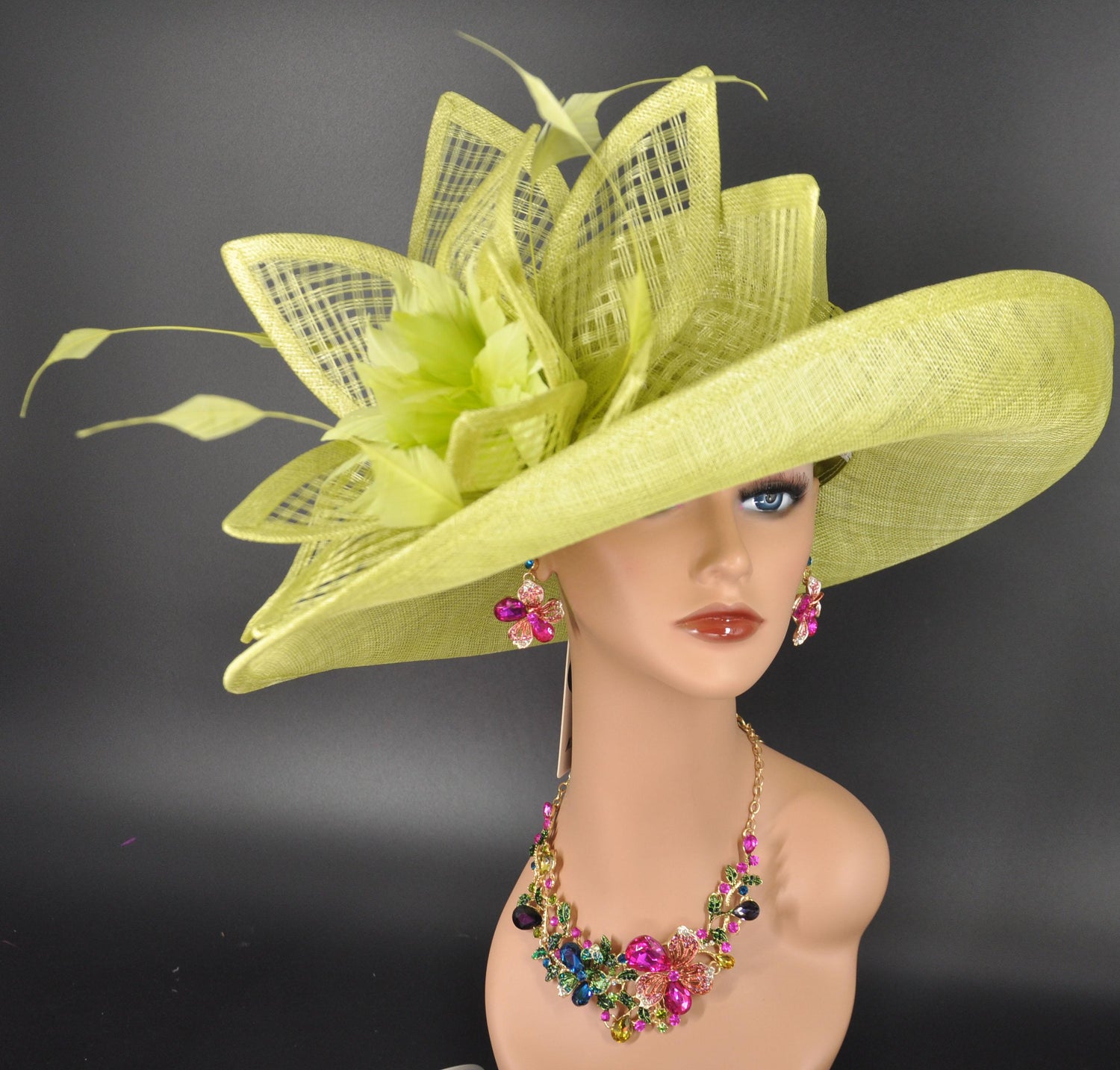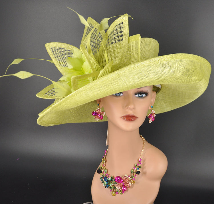 Lime Green Kentucky Derby Hat: Wide Brim Sinamay Church Hat