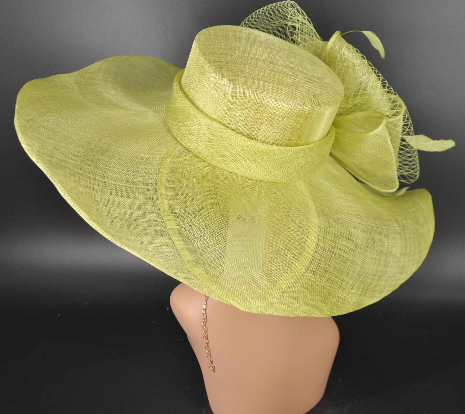 Lime Green Sinamay Kentucky Derby Hat: Wide Brim Occasion Hat