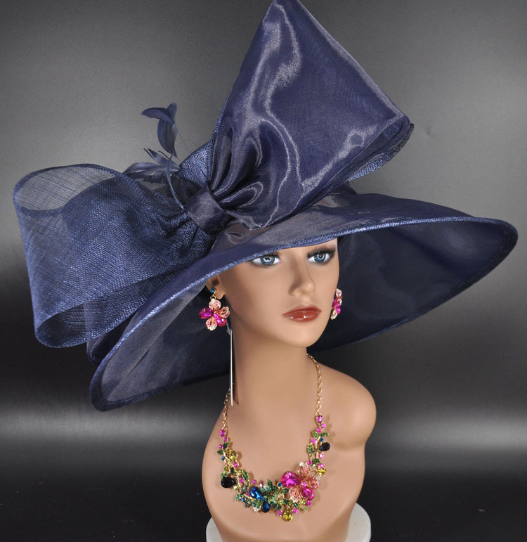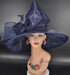 Navy Blue Sinamay Derby Hat: Wide Brim Ascot Wedding Hat