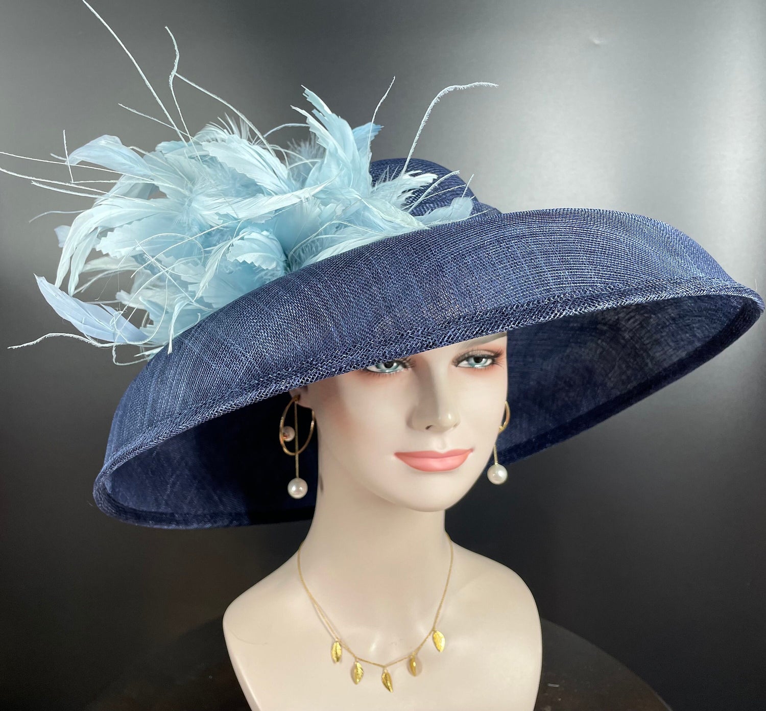 Navy Blue Sinamay Dome Hat: Audrey Hepburn Style, Kentucky Derby
