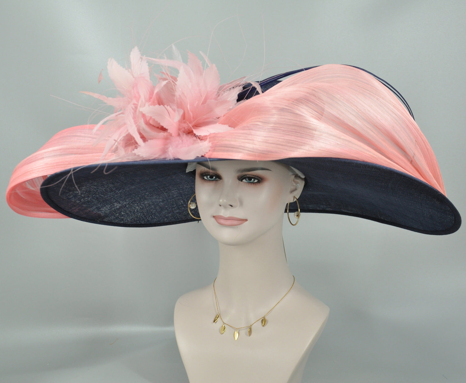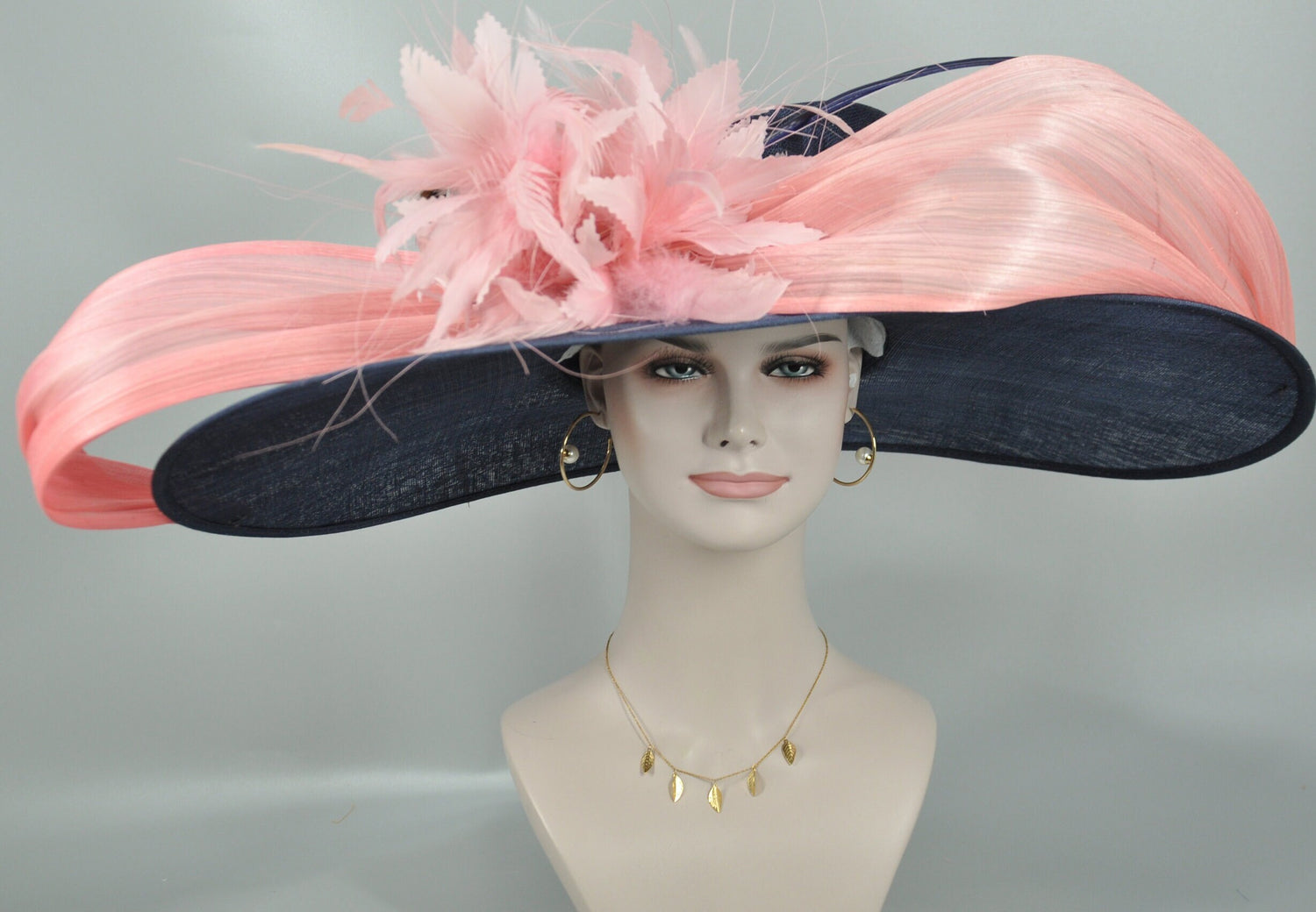 Navy Feather Flower Derby Hat: Silk Abaca Bow Ascot Hat