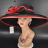 Oaks Day Hat Black w Red Feather Hat, Kentucky Derby, Tea Party, Wedding, Church, Royal Ascot Headpiece Wide Brim Sinamay Hat