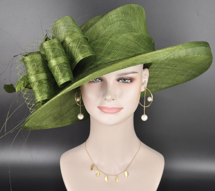 Olive Green Derby Hat, Wide Brim Sinamay Hat Royal Ascot Hat, Tea Party Hat, Wedding Guest Hat, Spring Racing Hat