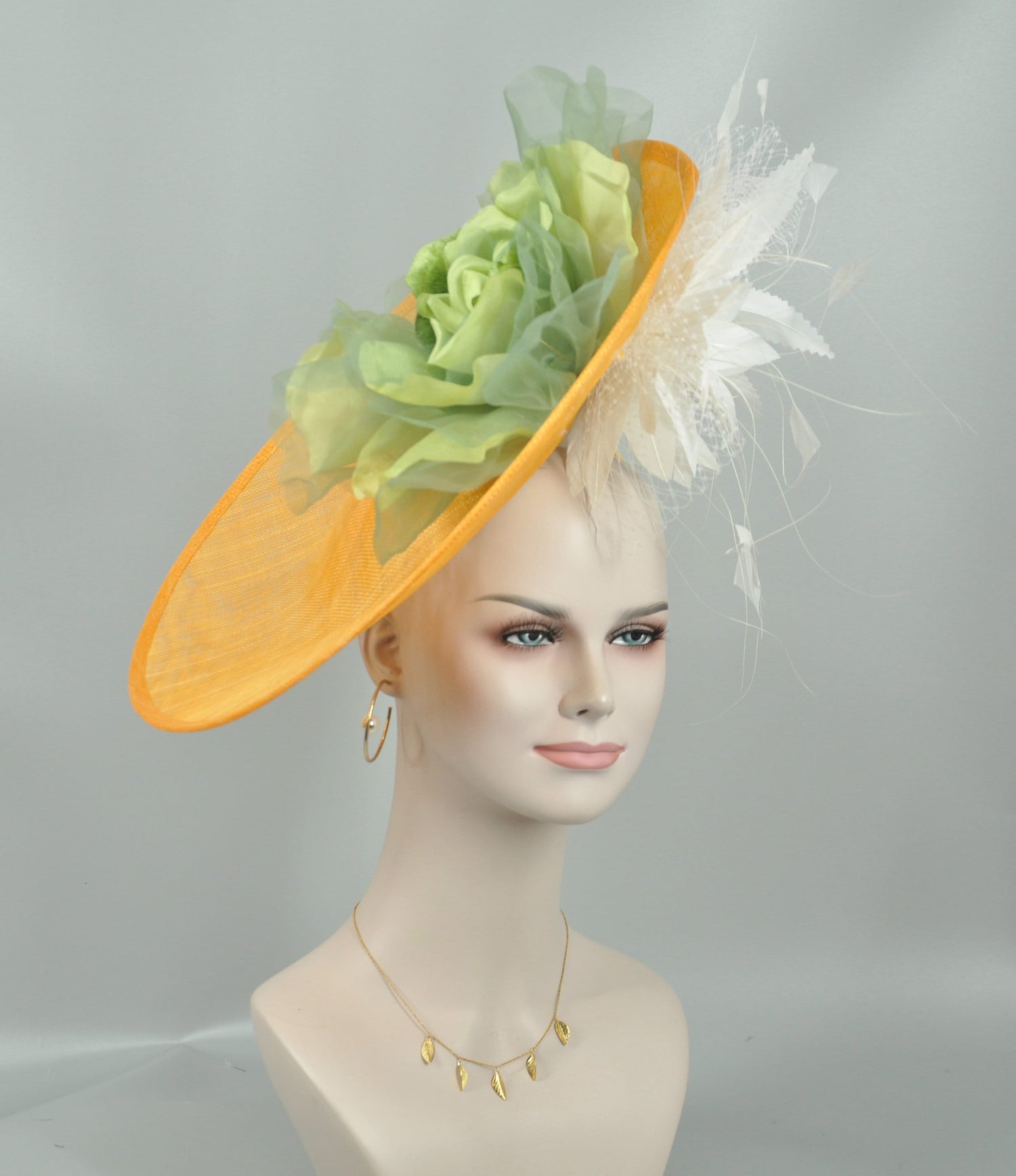 Orange Sinamay Fascinator Hat: Silk Flower Kentucky Derby Headpiece