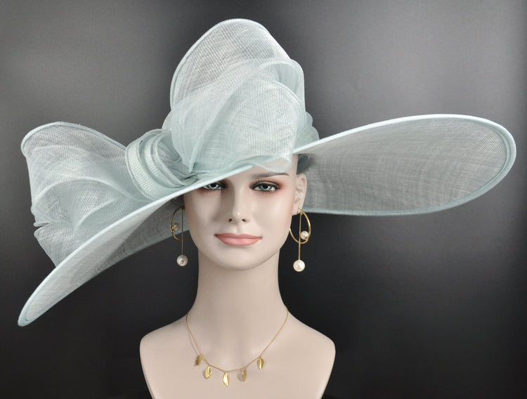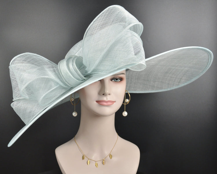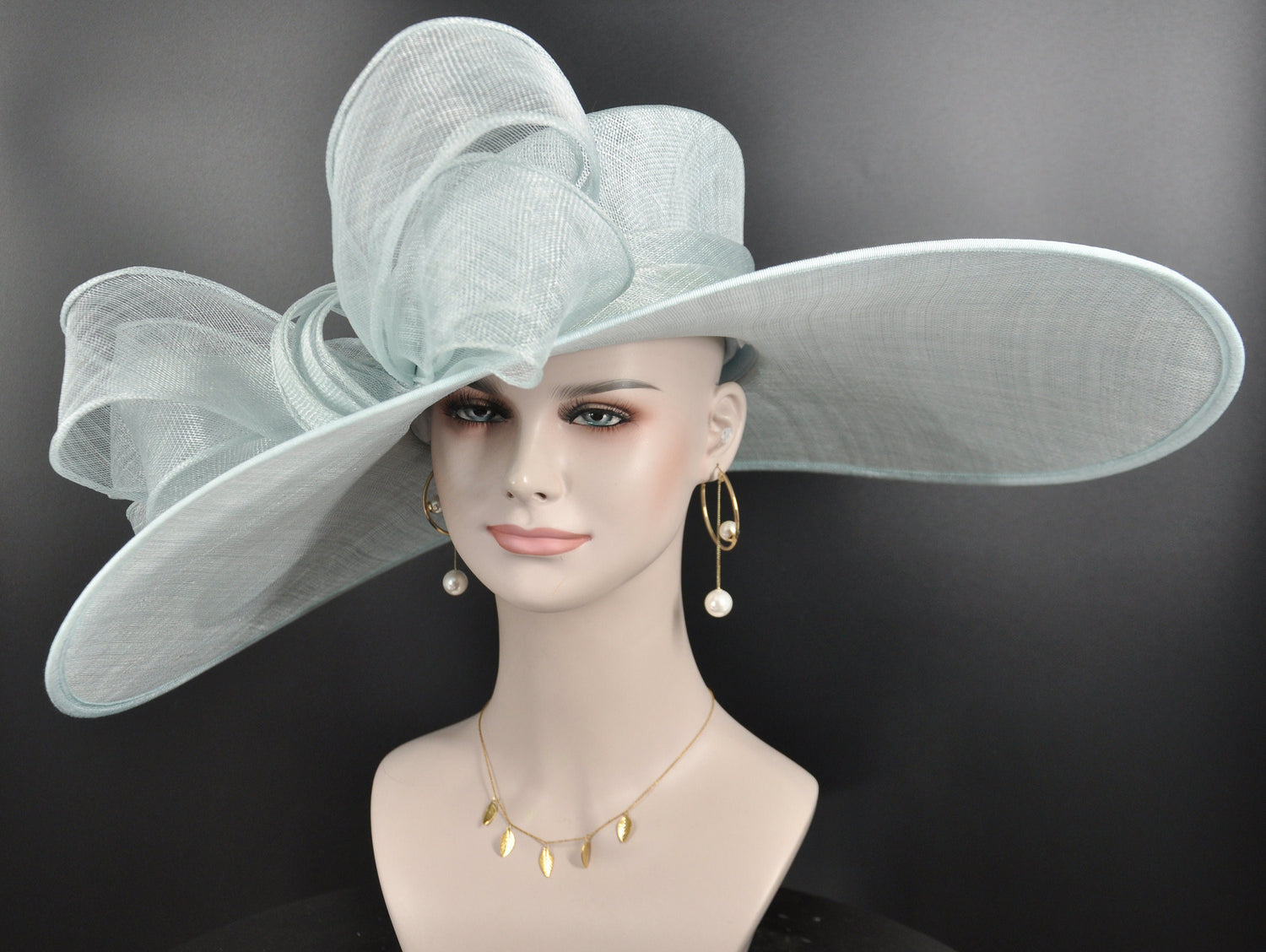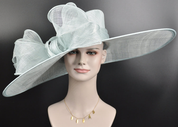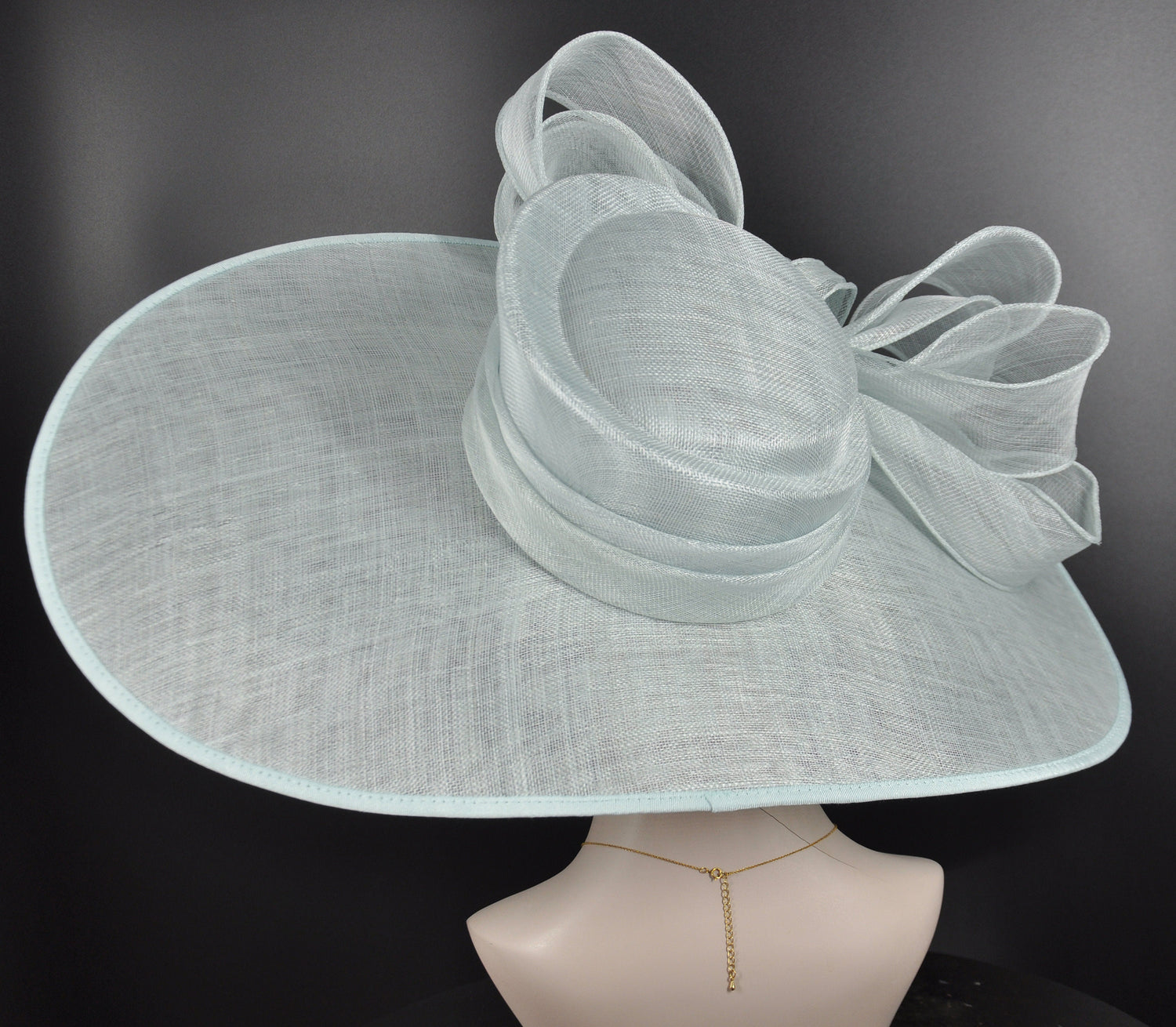 Powder Blue Derby Hat: Sinamay Bow, Feather Ascot Hat