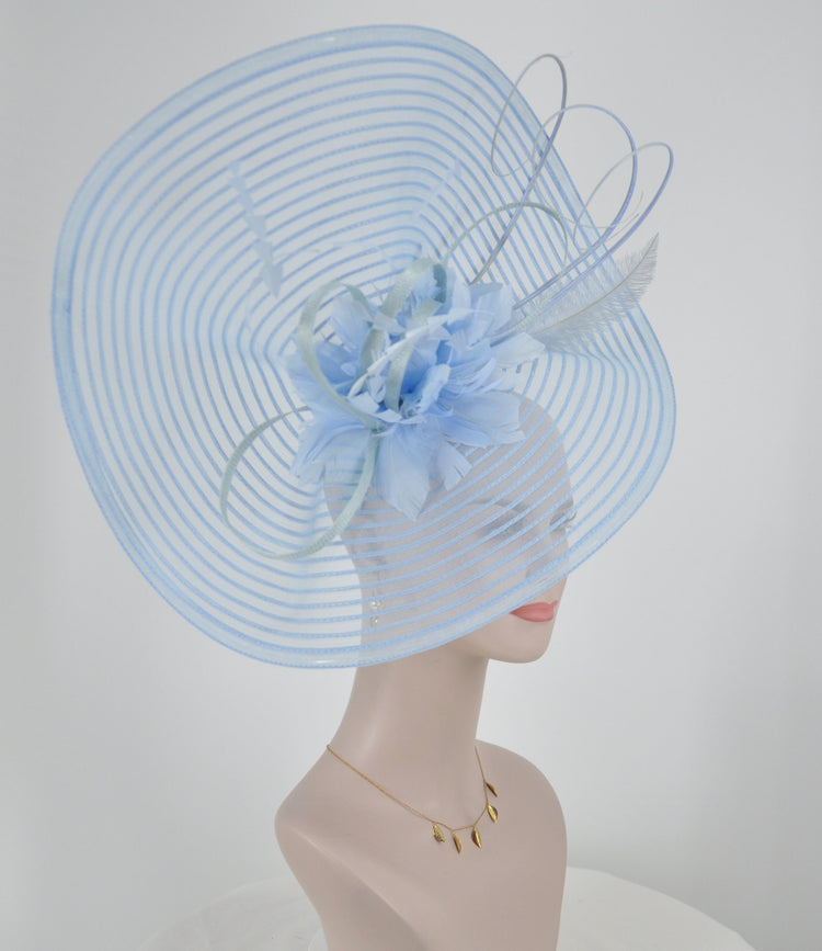 Powder Blue Feather Fascinator Hat: Kentucky Derby, Tea Party