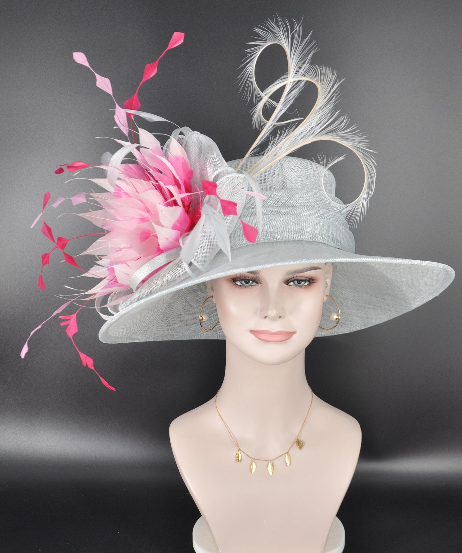 This 3 layers wide brim sinamay hat boasts a captivating ensemble, featuring 3 pcs pheasant feather and a few real feathers that add a touch of wild elegance. Accentuating its allure is a generously sized linen sinamay bow, gracefully tying together the essence of sophistication and a hint of untamed charm.