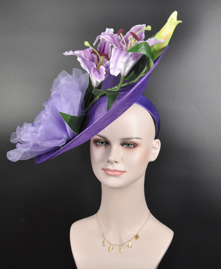 Purple Sinamay Fascinator Hat: Lilac Silk Flower Kentucky Derby Hat