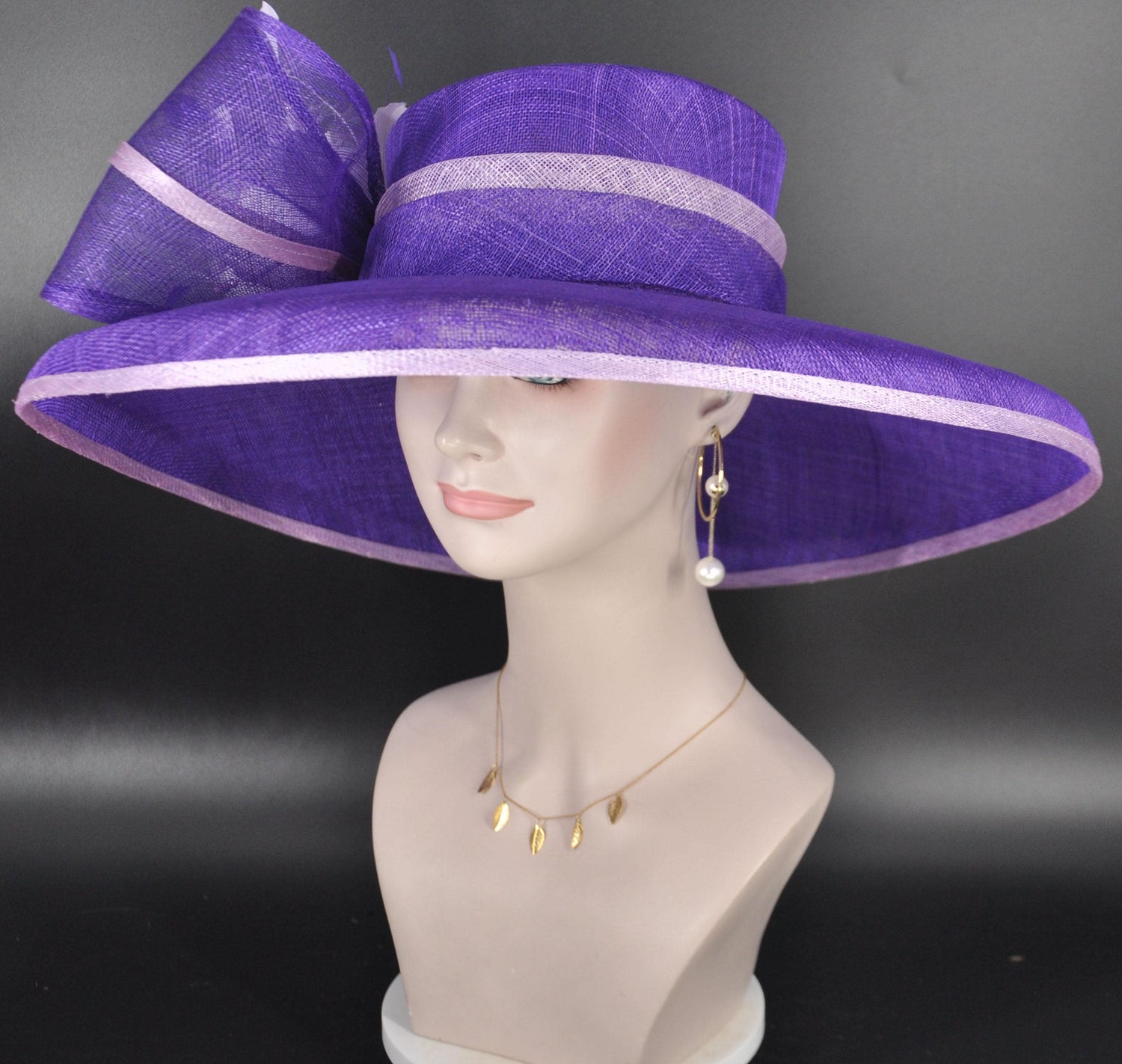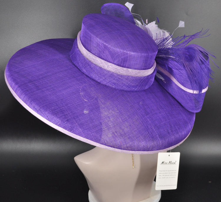 Purple Sinamay Kentucky Derby Hat: Feathered Wide Brim Ascot Hat