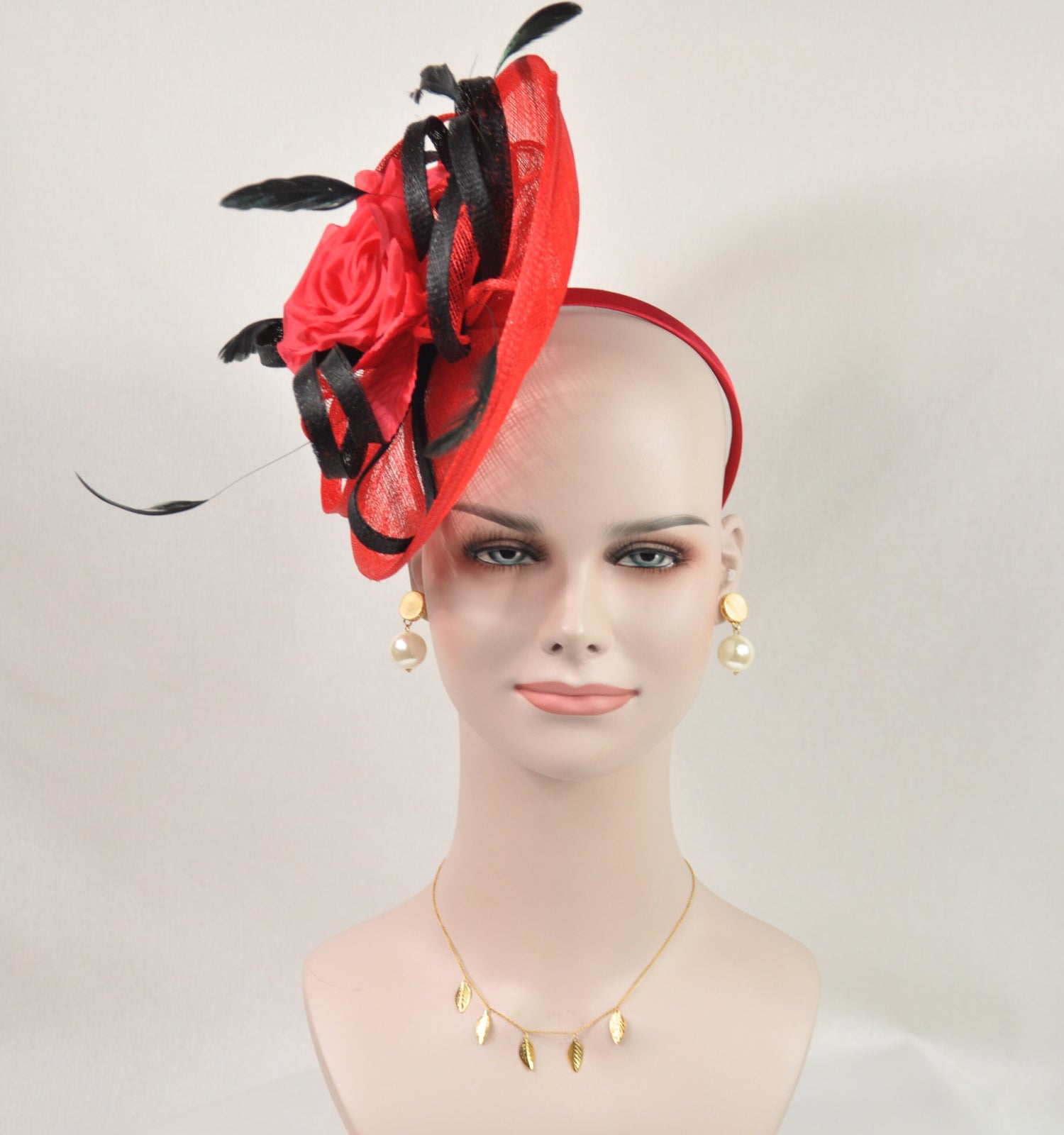 Red Silk Flower with Sinamay Fascinator Hat bridal hat, royal ascot hat, kentucky derby hat, races hat