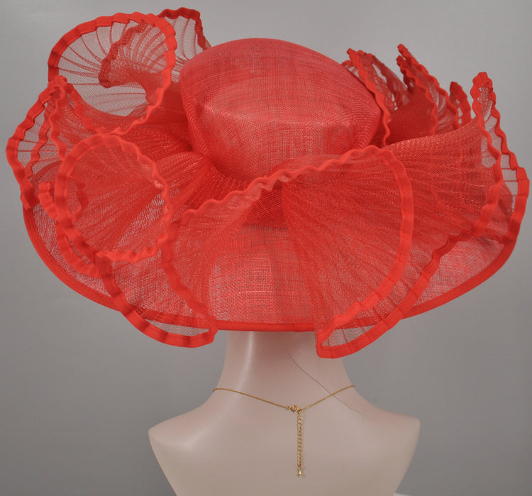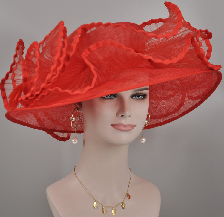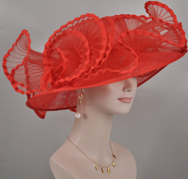 Red Sinamay Kentucky Derby Hat: Feather Flower Tea Party Hat