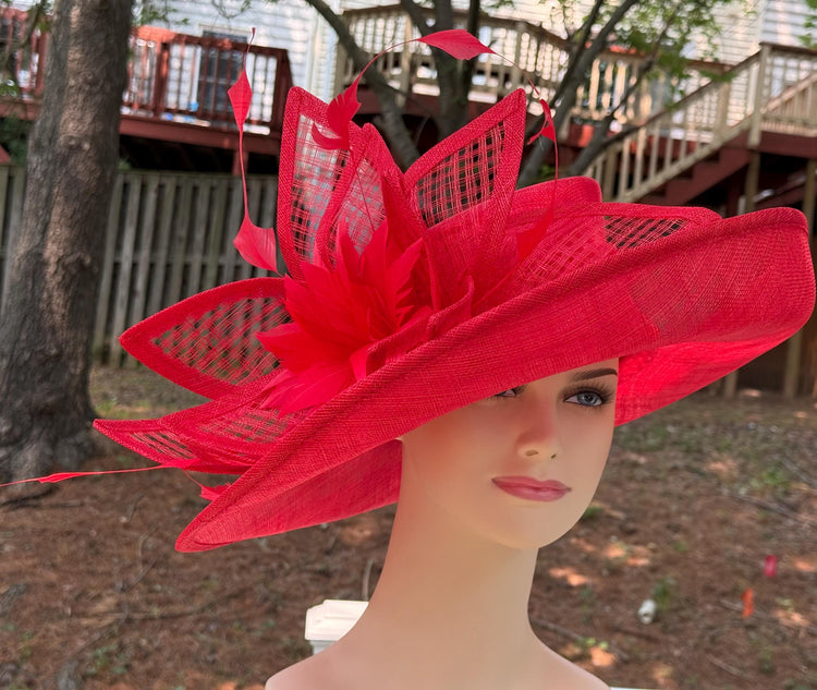 Red Sinamay Kentucky Derby Hat: Wide Brim Race Day Ascot Hat
