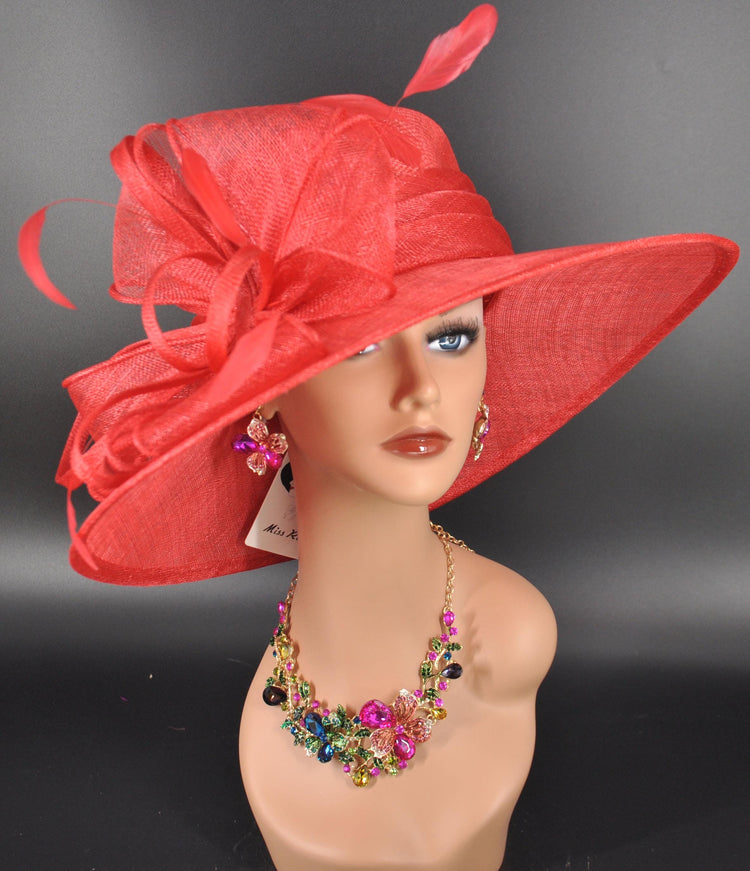 Red Sinamay Wide Brim Hat: Kentucky Derby, Tea Party