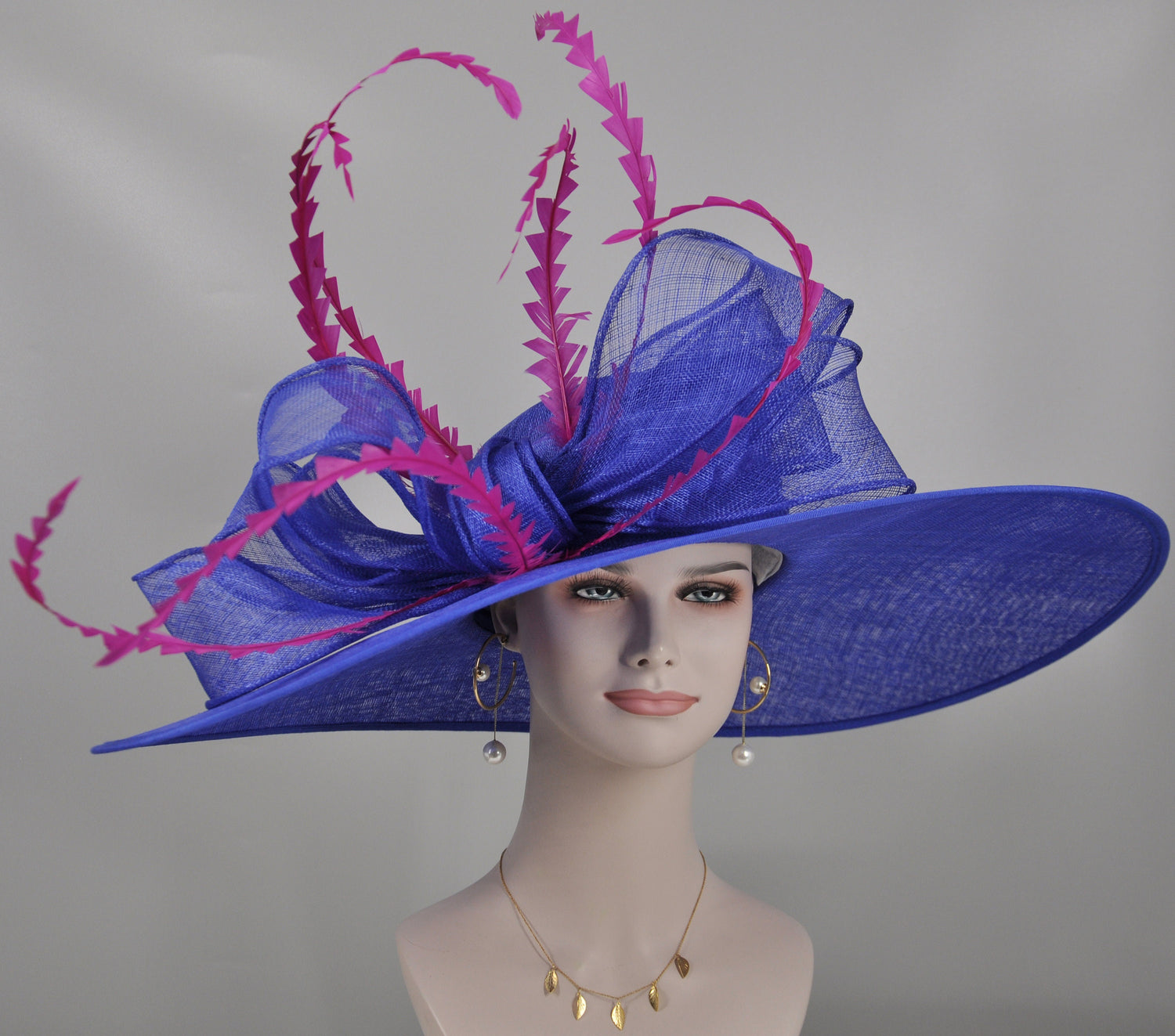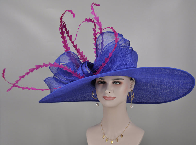 Royal Blue Derby Hat: Fuchsia Feather Ascot Hat