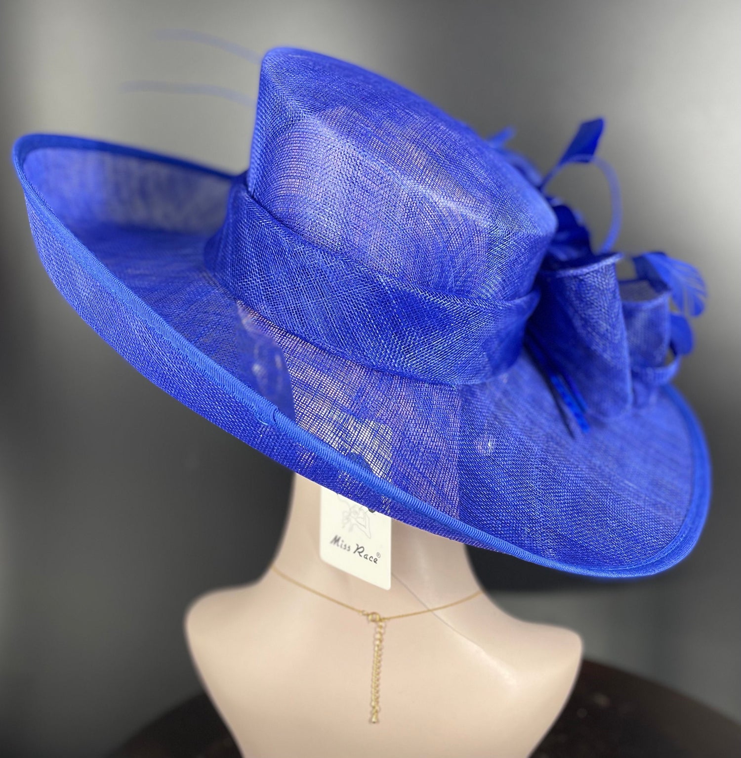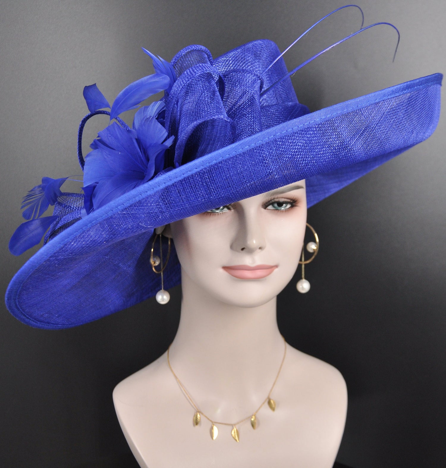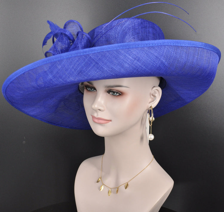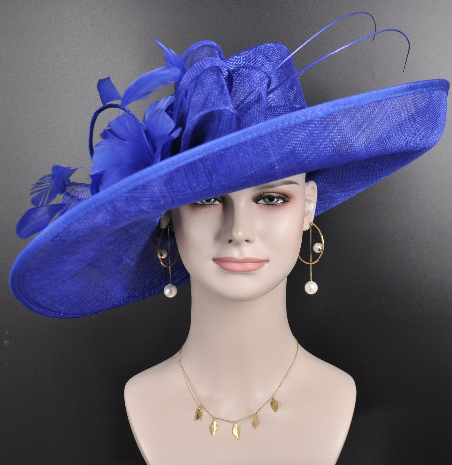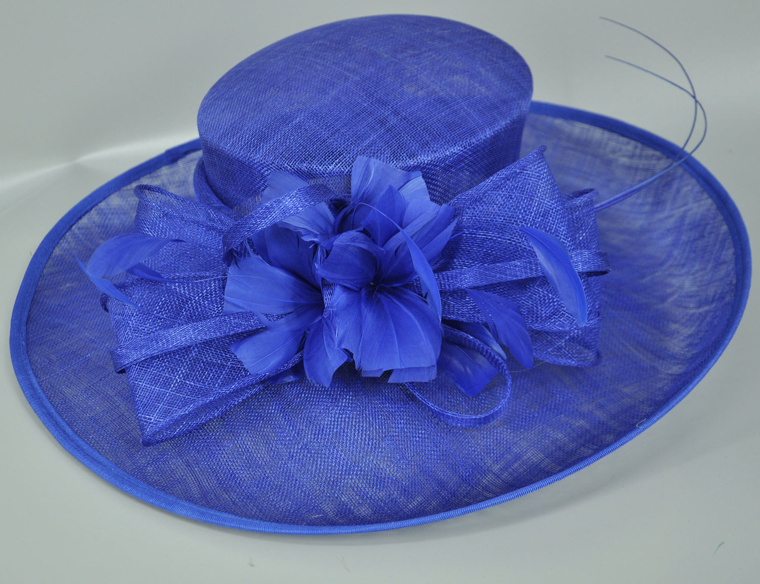 Royal Blue Sinamay Derby Hat: Wide Brim Wedding Tea Party Hat