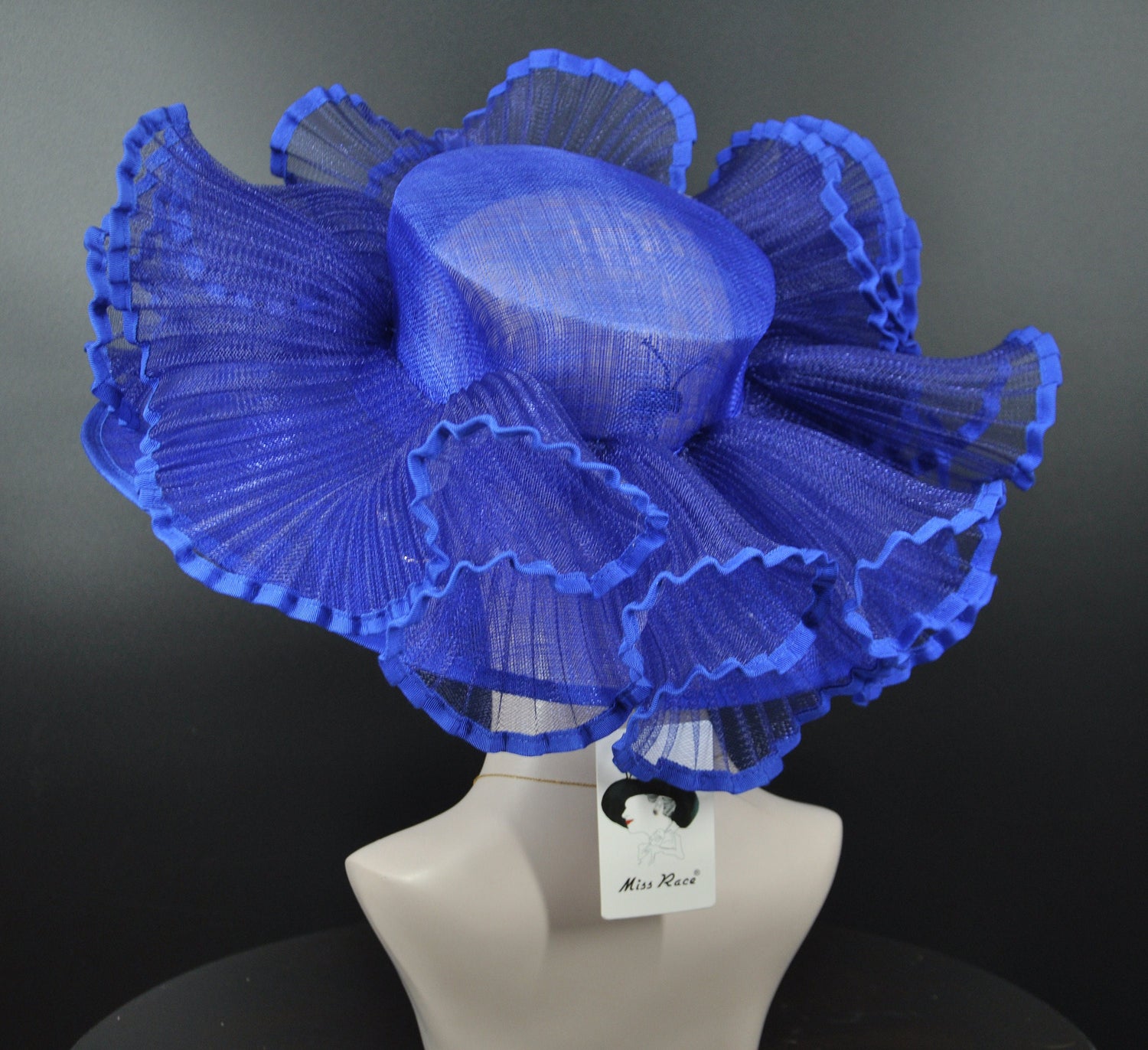 Royal Blue Sinamay Kentucky Derby Hat: Wide Brim Wedding Ascot Hat