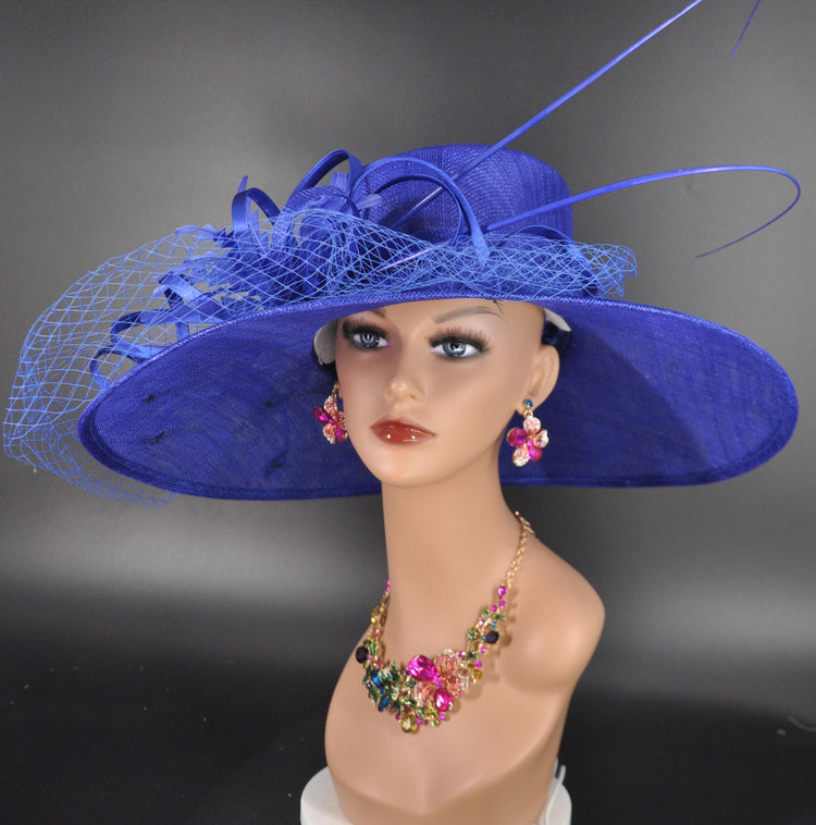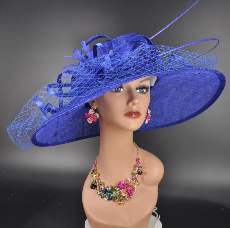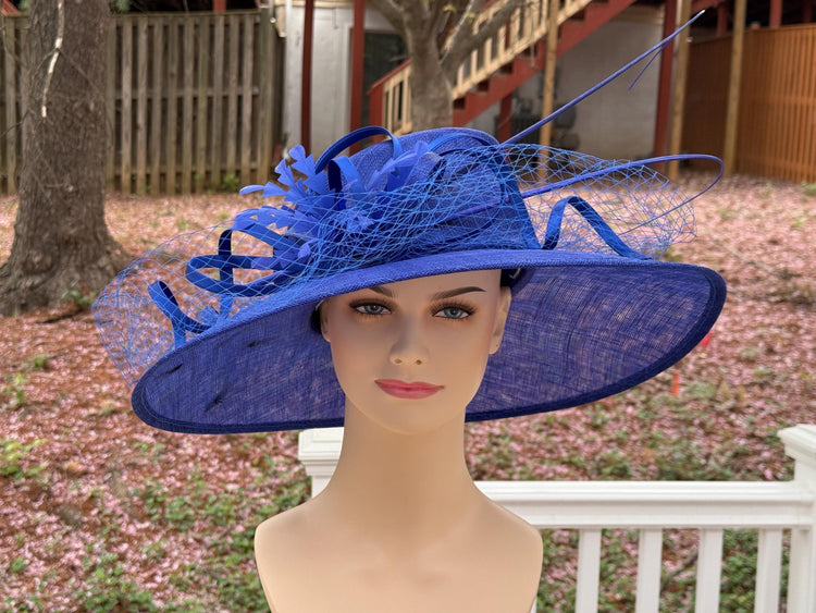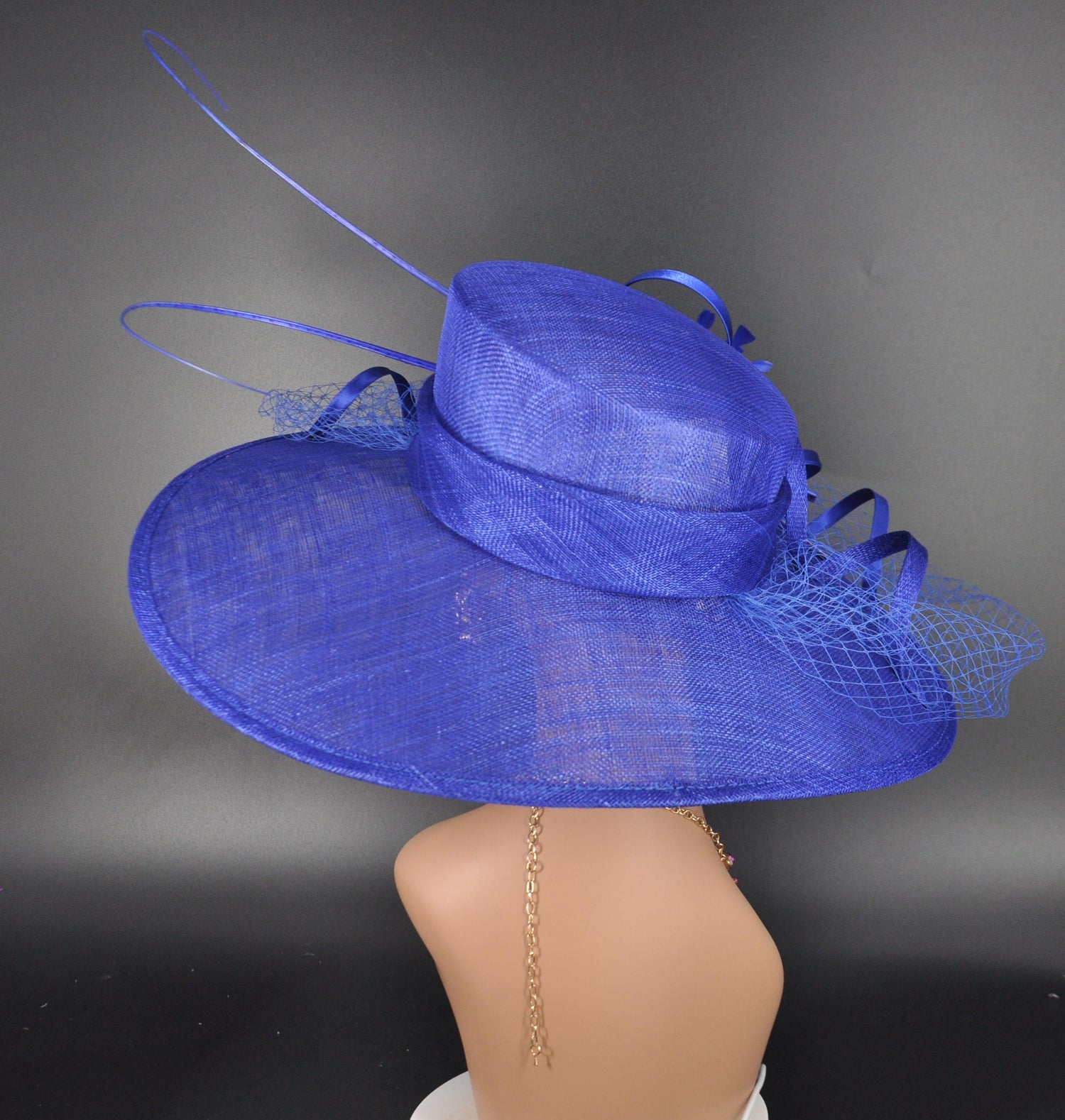 Royal Blue Sinamay Wide Brim Hat: Kentucky Derby Ascot Occasion