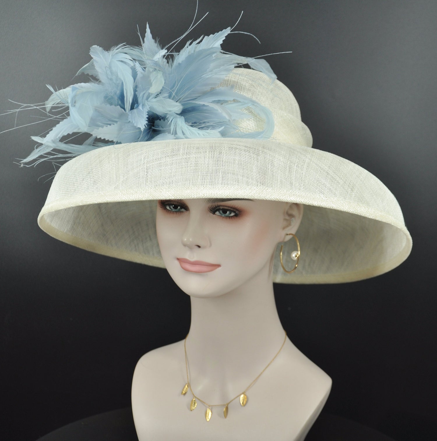 Sinamay Dome Hat: Audrey Hepburn Style, Kentucky Derby, Ivory & Powder Blue