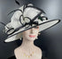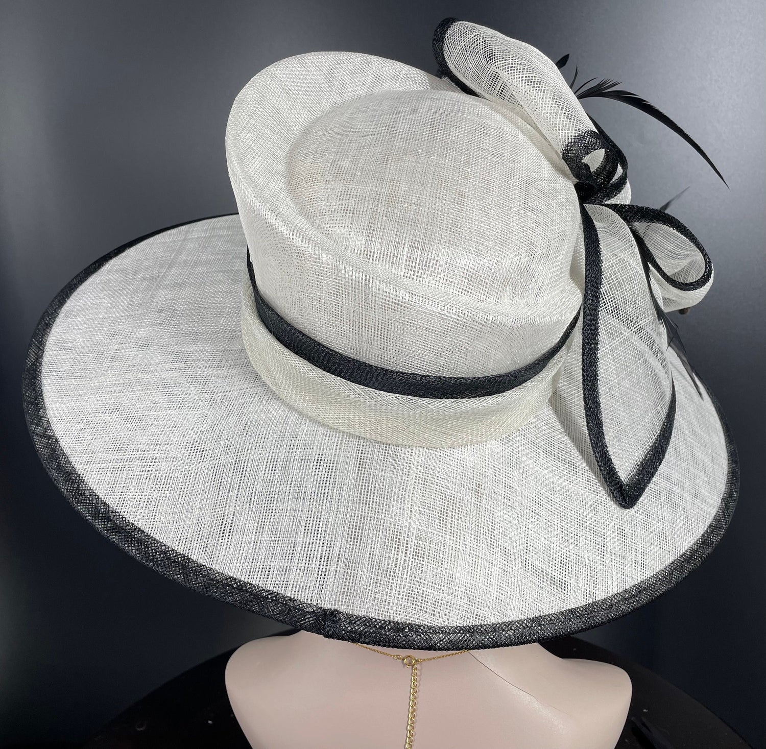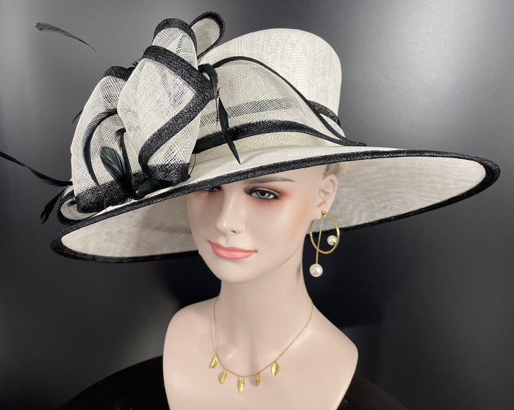 Sinamay Kentucky Derby Hat: Black & White Feathered Wide Brim