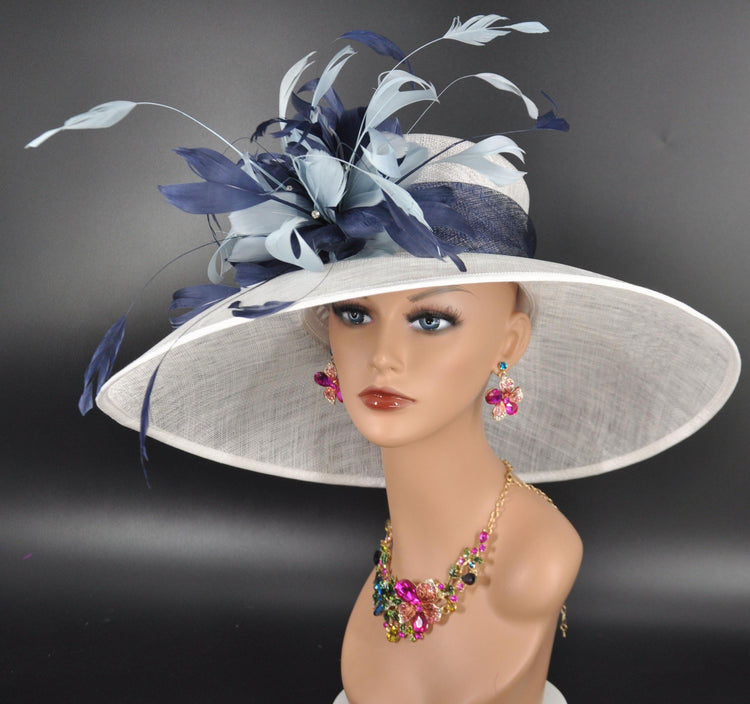 Sinamay Kentucky Derby Hat: Feather Flower Wide Brim Tea Party Hat