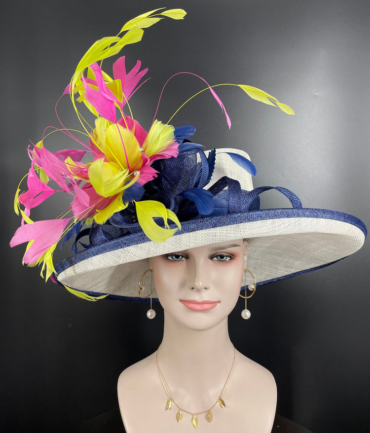 Sinamay Kentucky Derby Hat: Wide Brim Feather Flower, Tea Party Wedding