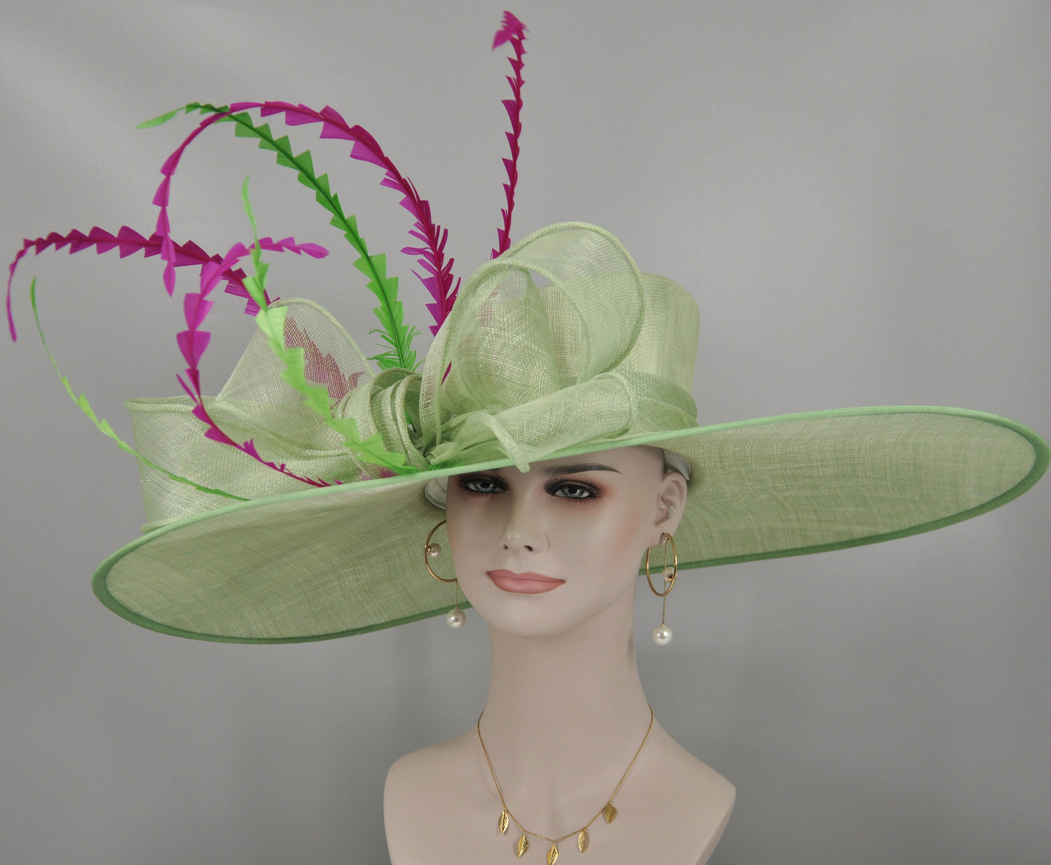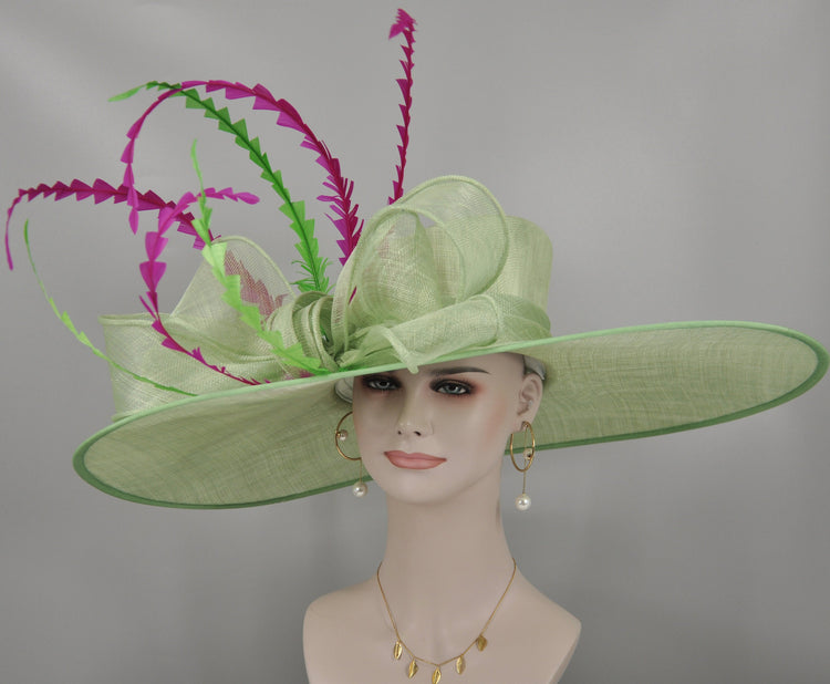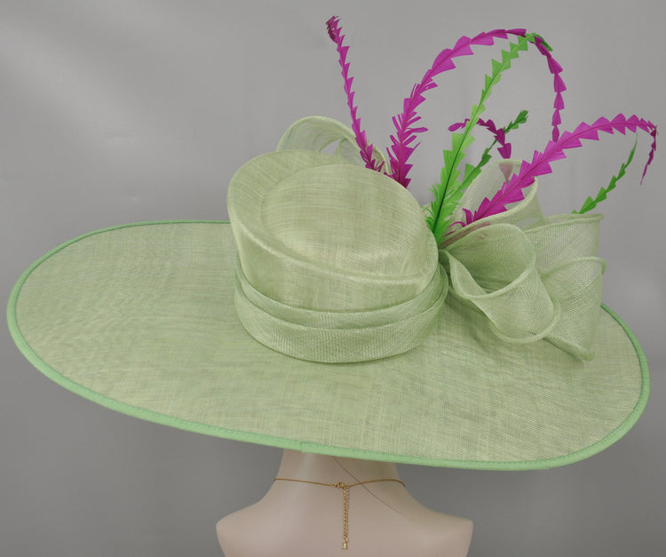 Spring Green Kentucky Derby Hat: Feathered Ascot Tea Party Hat