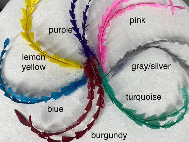 The crown is decorated with 100% feathers and big sinamay bow. Very beautiful!!