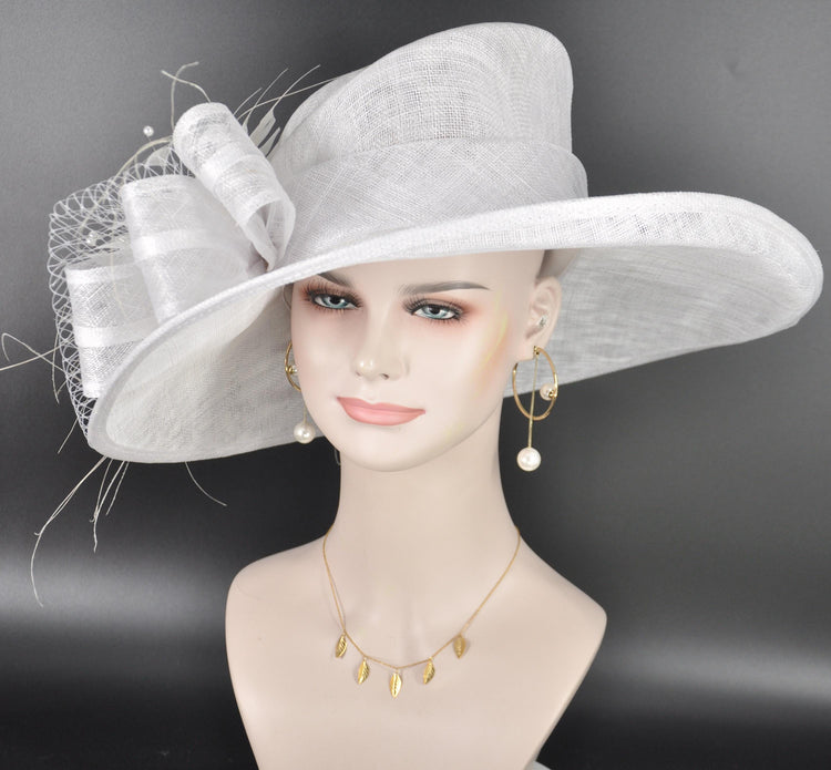 White Kentucky Derby Hat, Wide Brim Sinamay Hat for Women, Royal Ascot Hat, Tea Party Hat, Wedding Guest Hat, Spring Racing Hat