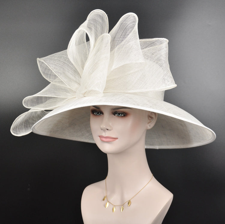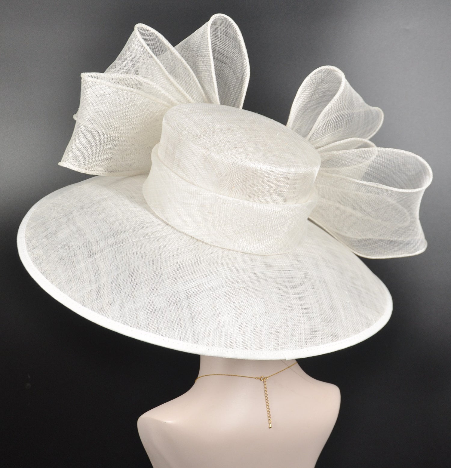 White Sinamay Derby Hat: Wide Brim Royal Ascot Wedding Hat