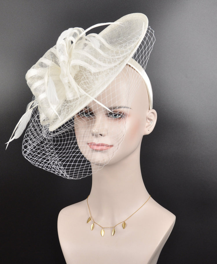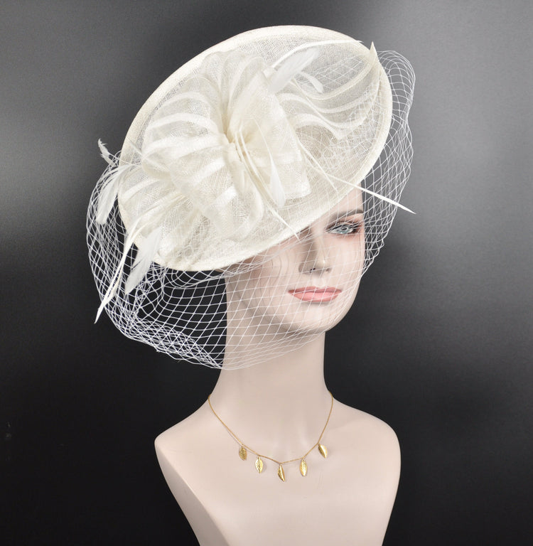 White Sinamay Fascinator Hat: Kentucky Derby, Tea Party, Wedding