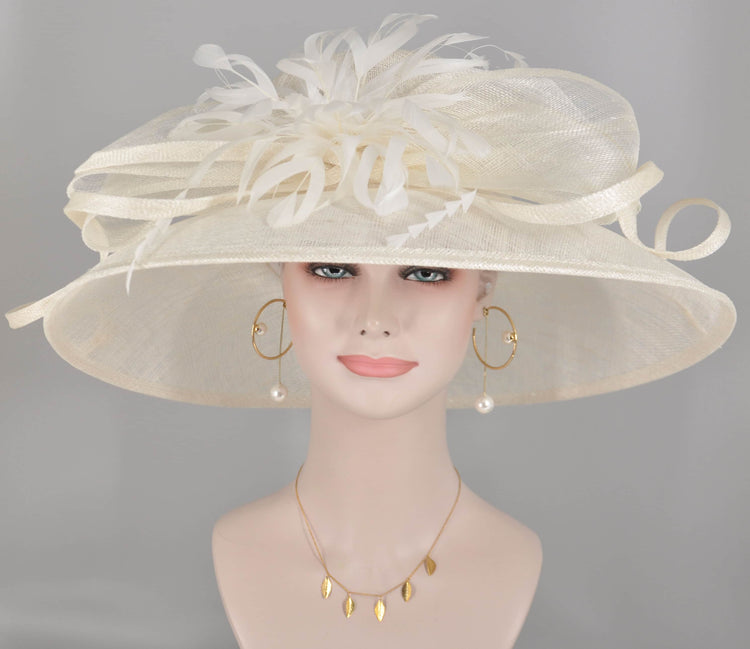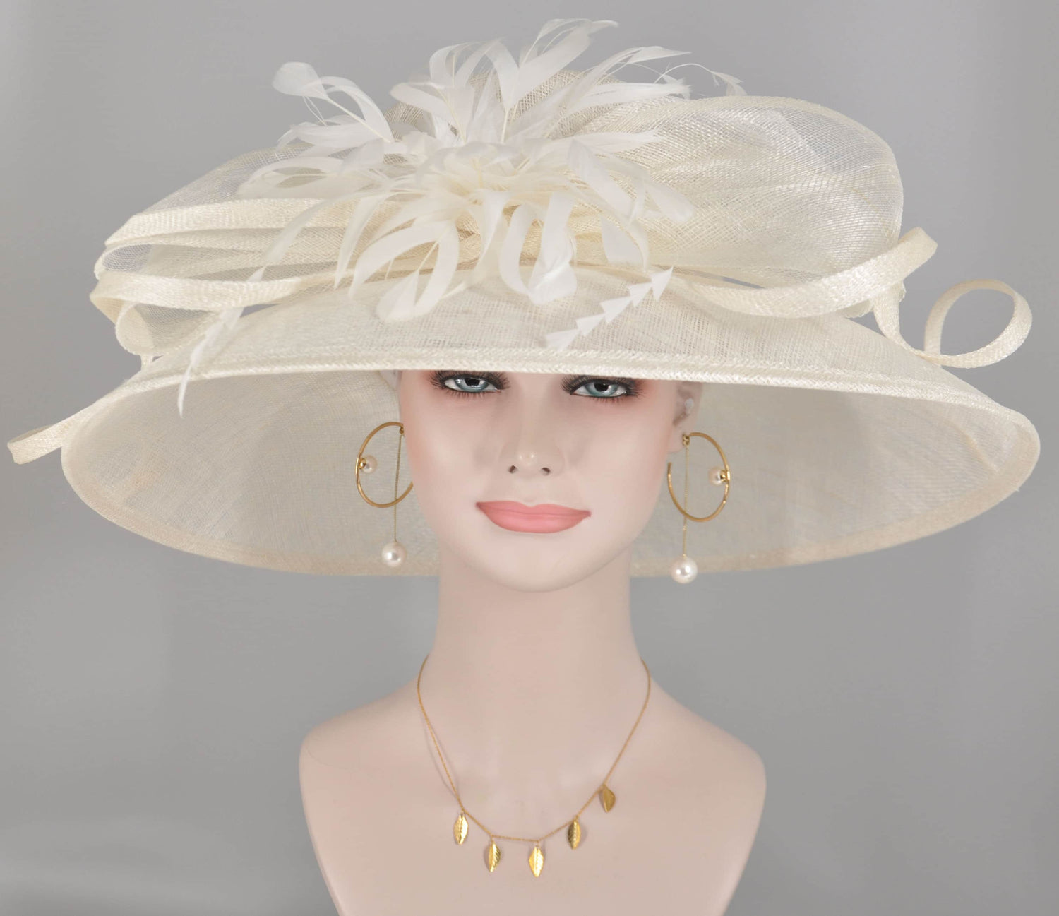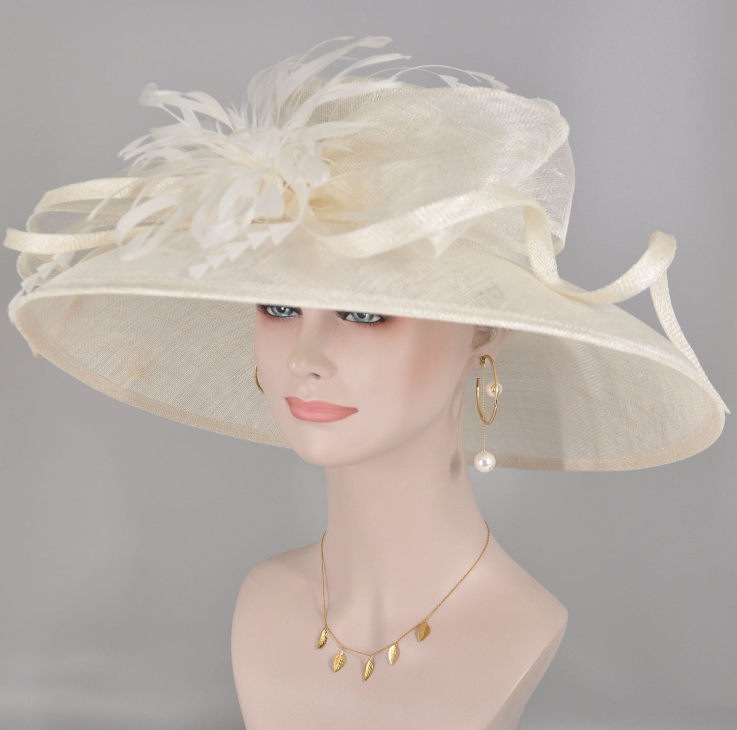 White Sinamay Kentucky Derby Hat: Feather Flower Tea Party Wedding
