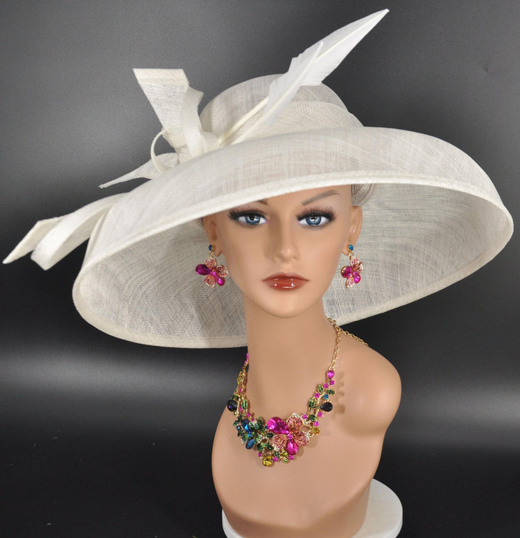 White Wide Brim Sinamay Hat: Audrey Hepburn Style Kentucky Derby