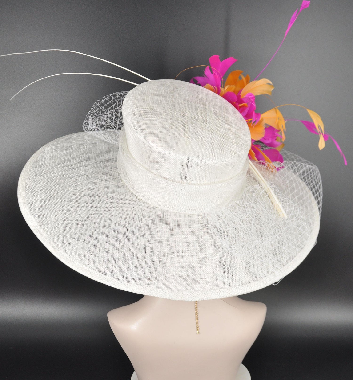 Wide Brim Sinamay Derby Hat: Feather Flower Quills