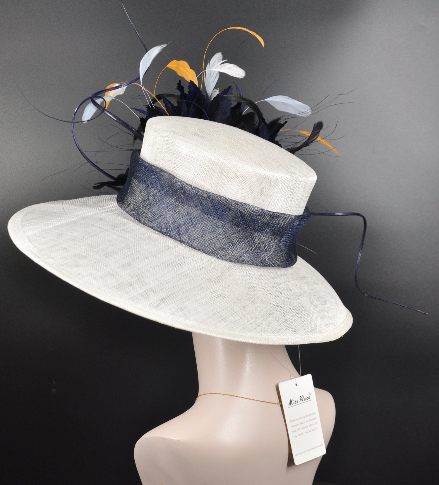 Wide Brim Sinamay Derby Hat: Feather Flower, Royal Ascot Style