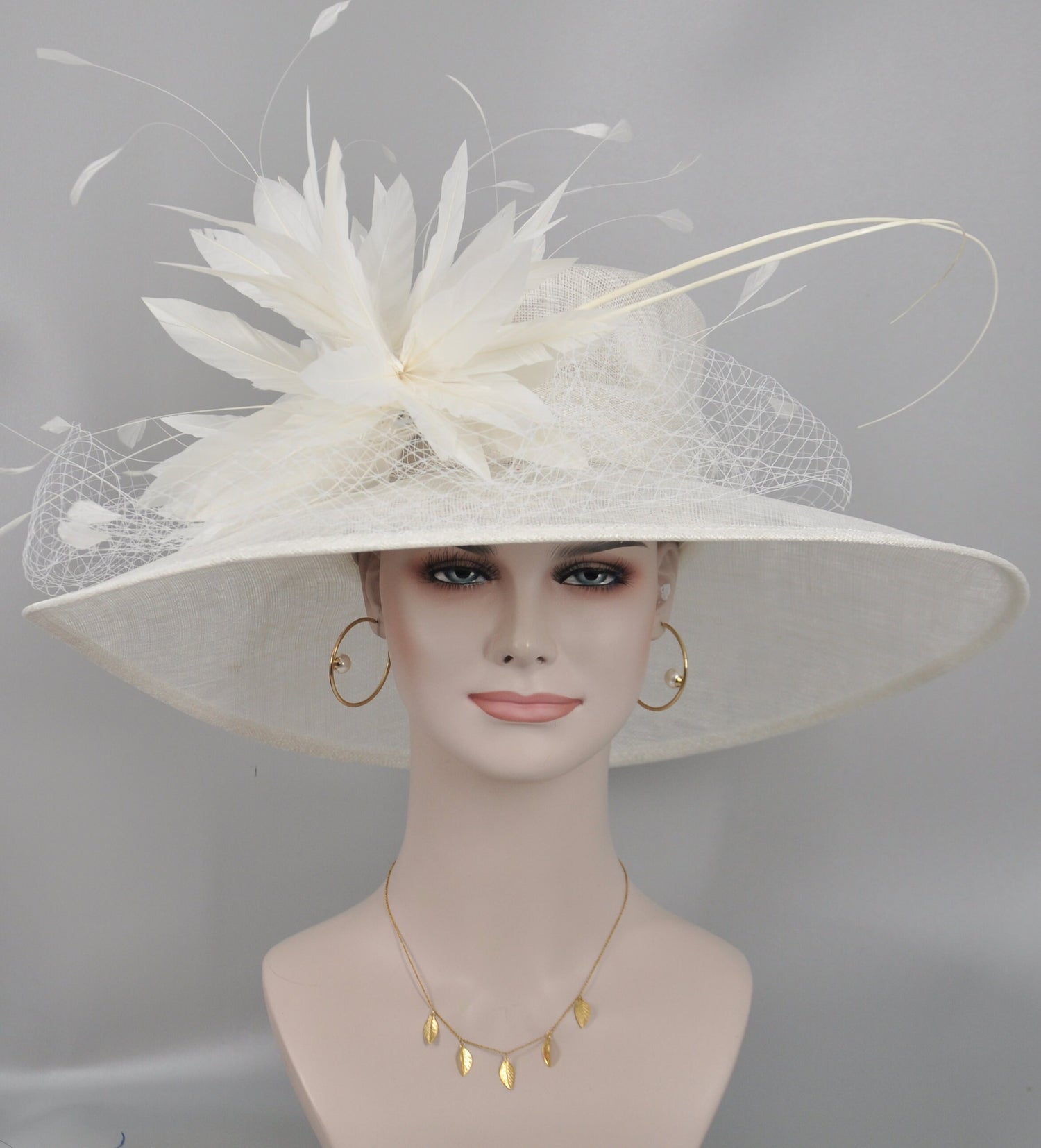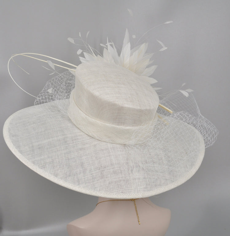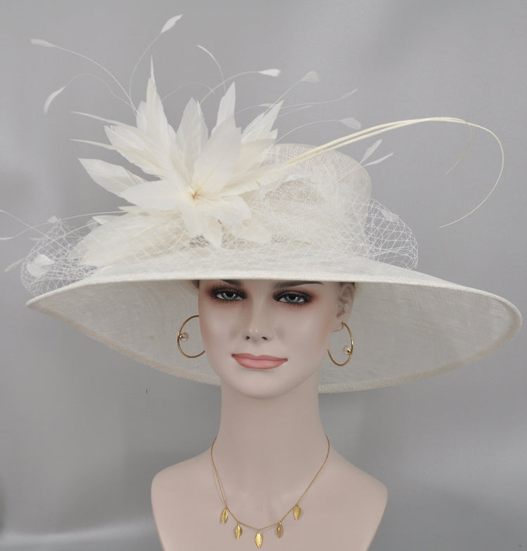 Wide Brim Sinamay Derby Hat: Feather Flower Wedding Ascot Hat