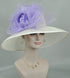 Wide Brim Sinamay Derby Hat: Ivory Wedding Tea Party Hat with Lavender Silk Flower