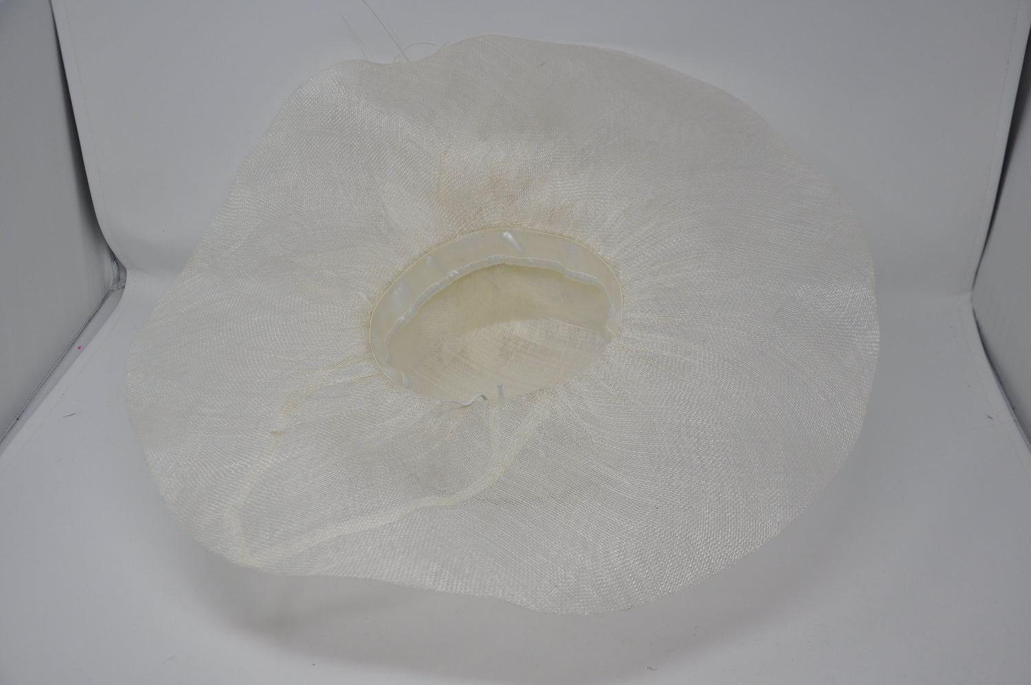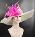 Wide Brim Sinamay Derby Hat: Ivory with Fuchsia Feather Flower