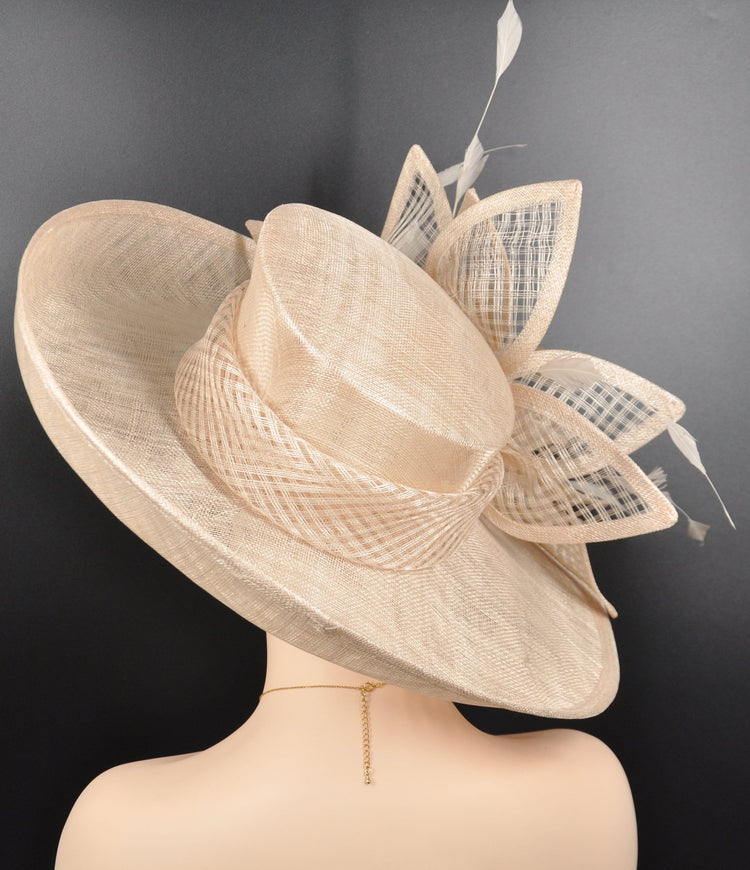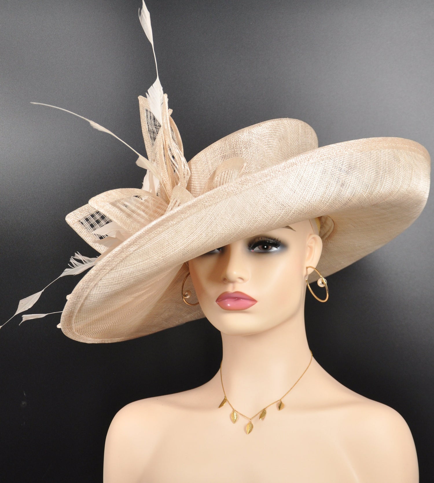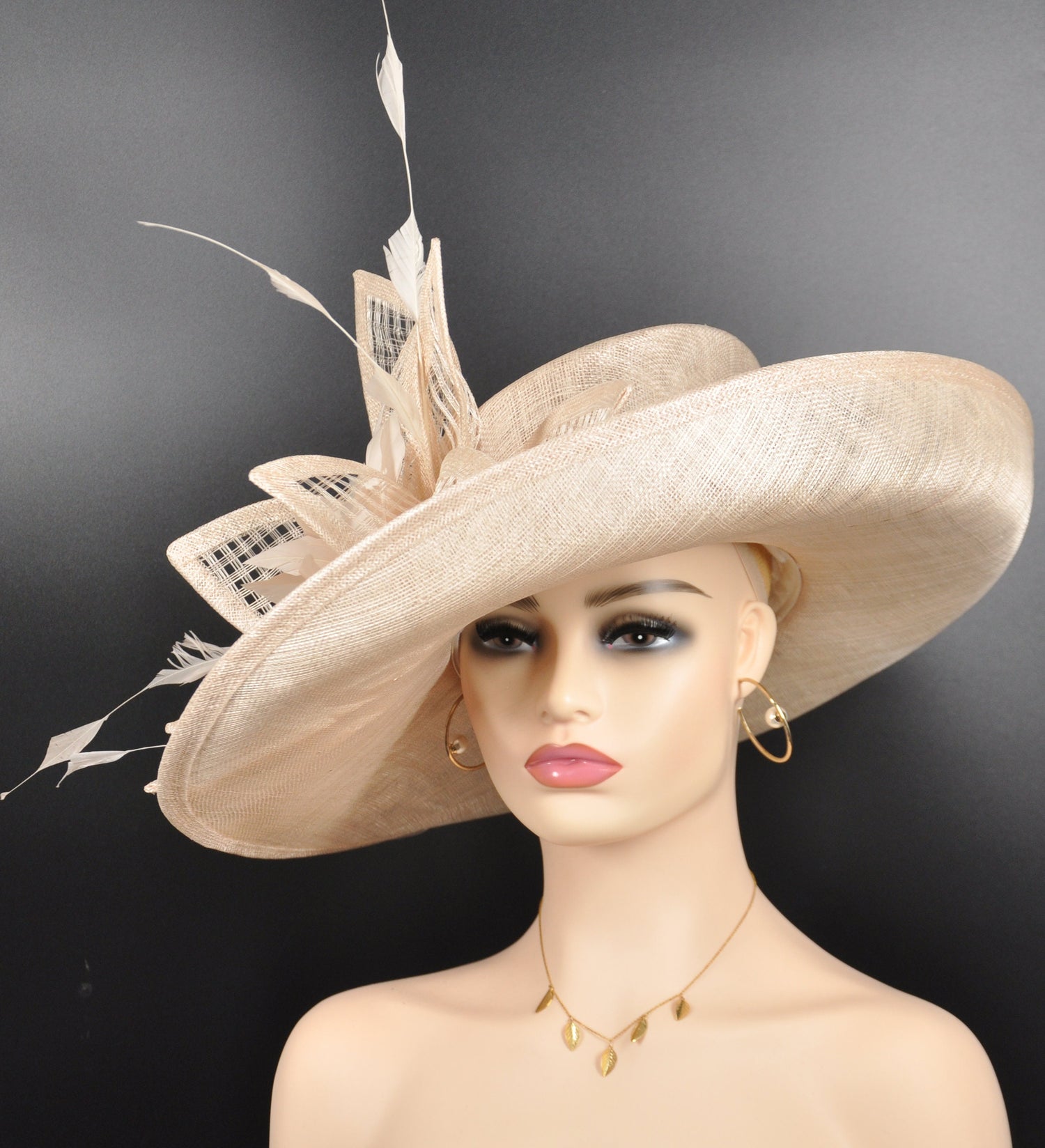 Wide Brim Sinamay Kentucky Derby Hat: Champagne Wedding Ascot Hat