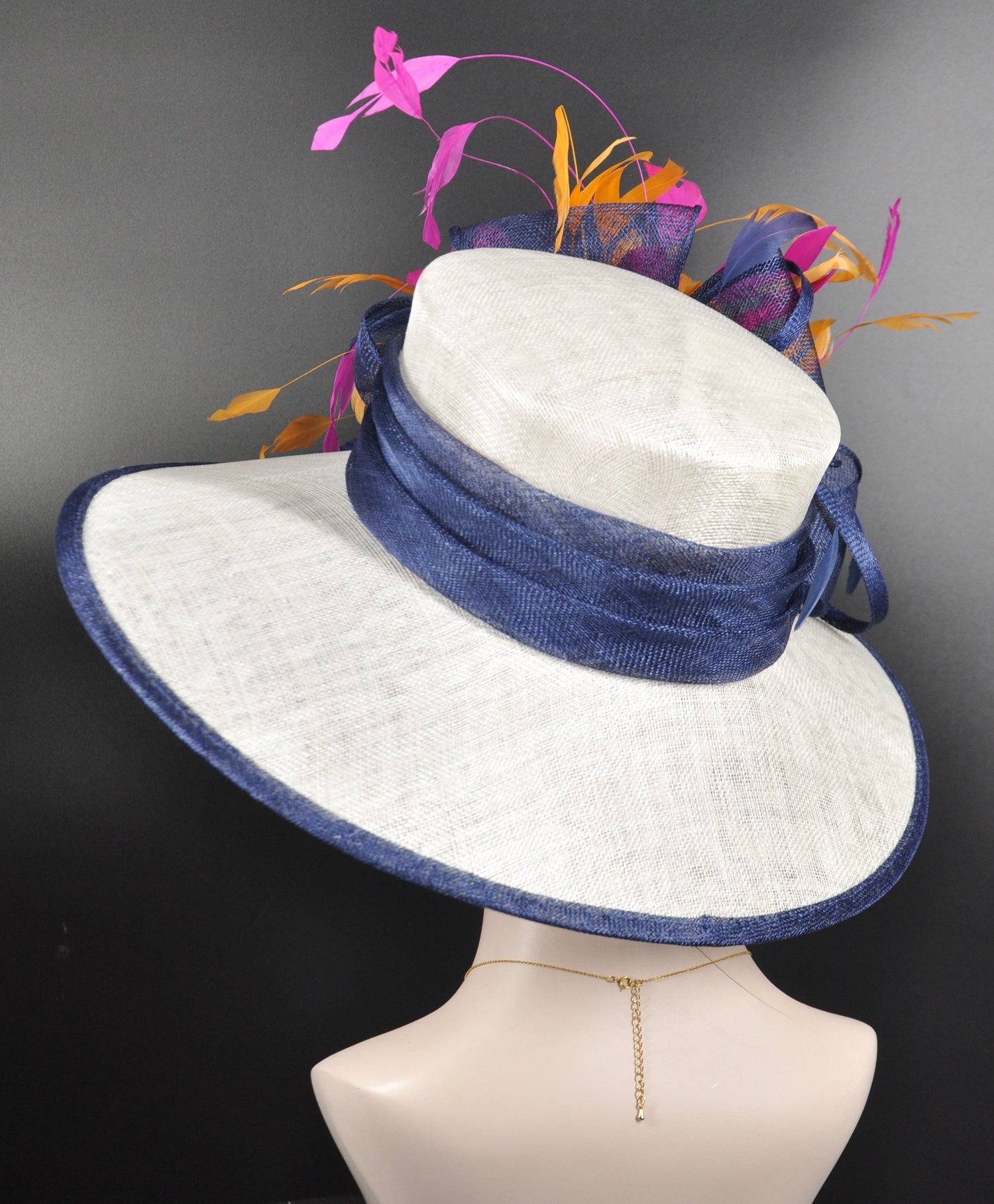 Wide Brim Sinamay Kentucky Derby Hat: Feather Fascinator