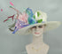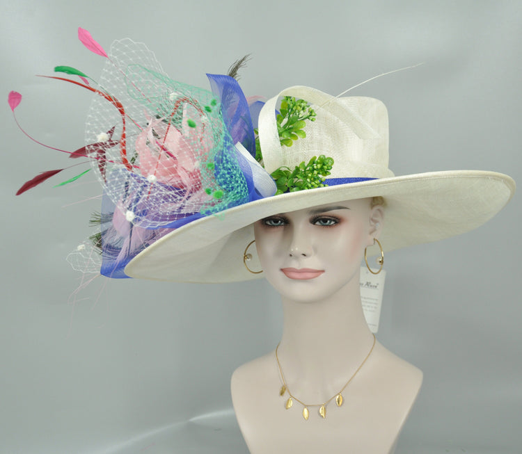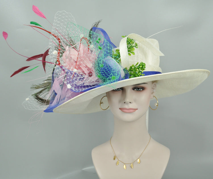 Wide Brim Sinamay Kentucky Derby Hat: Feather Flowers Tea Party