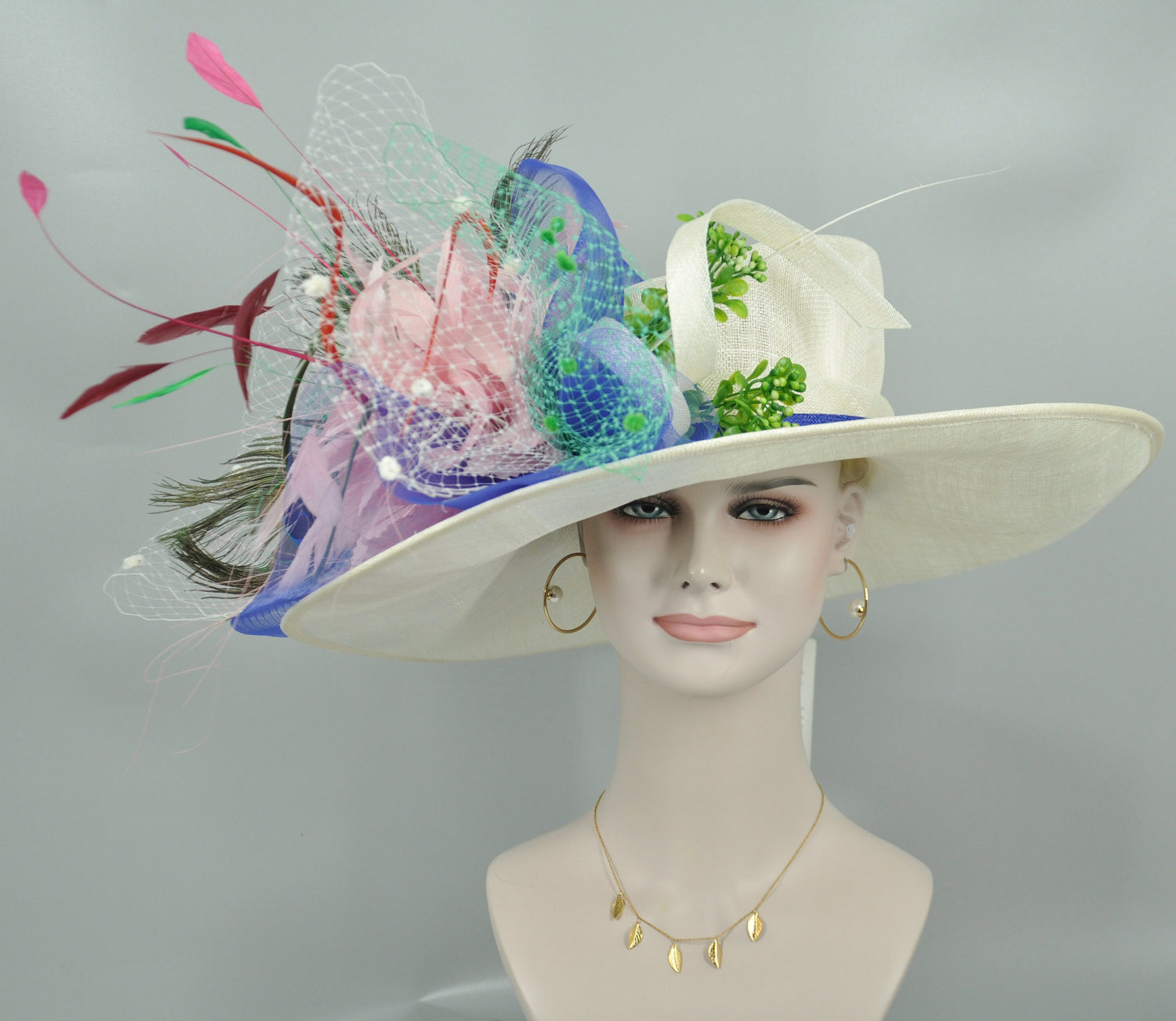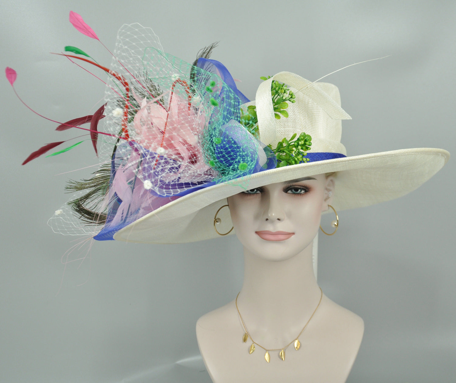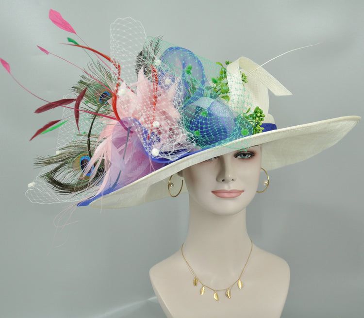 This is a gorgeous, very beautiful hat. Great for Kentucky Derby, Church, Wedding, Tea Party or other special event.