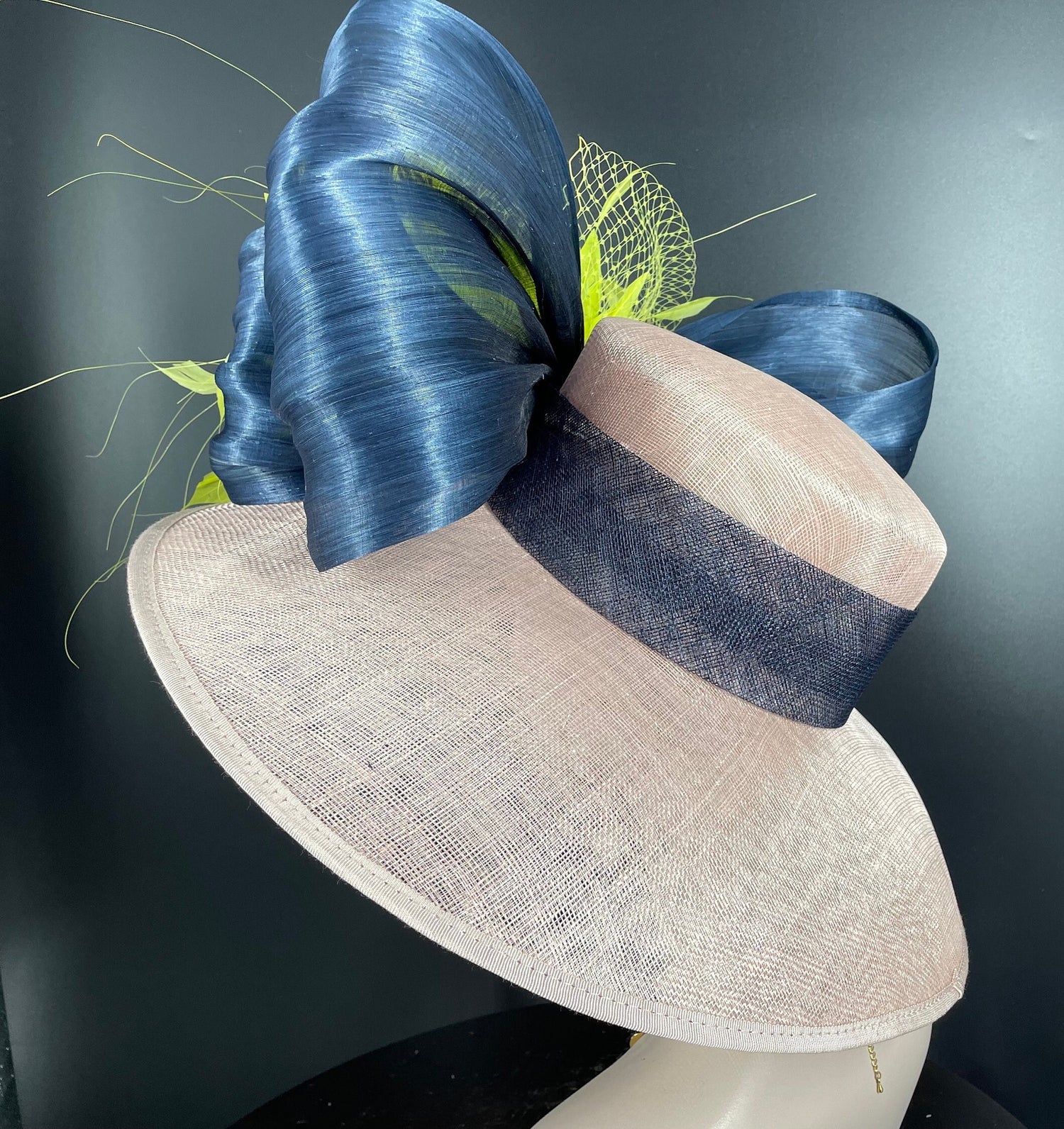 Wide Brim Sinamay Kentucky Derby Hat: Powder Blue Silk Abaca Bows