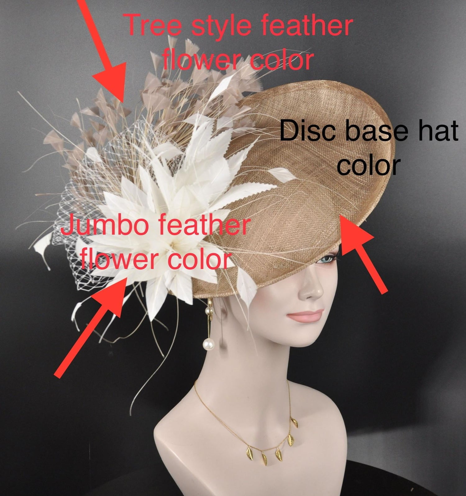 If you want to change the sinamay base hat or feather flower color to match your dress,check the last picture, tell me the colors you need